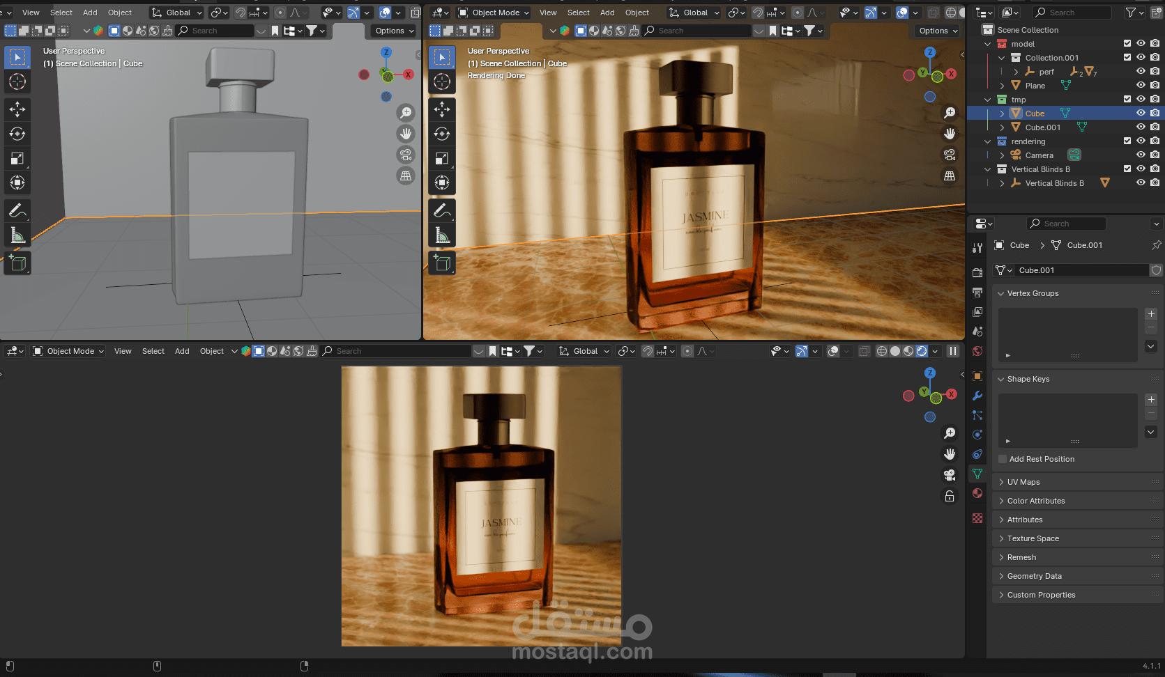 مشروع ثري دي لتصميم منتج عطر يشمل إنشاء نموذج ثرى دى باستخدام برنامج Blender 3D.