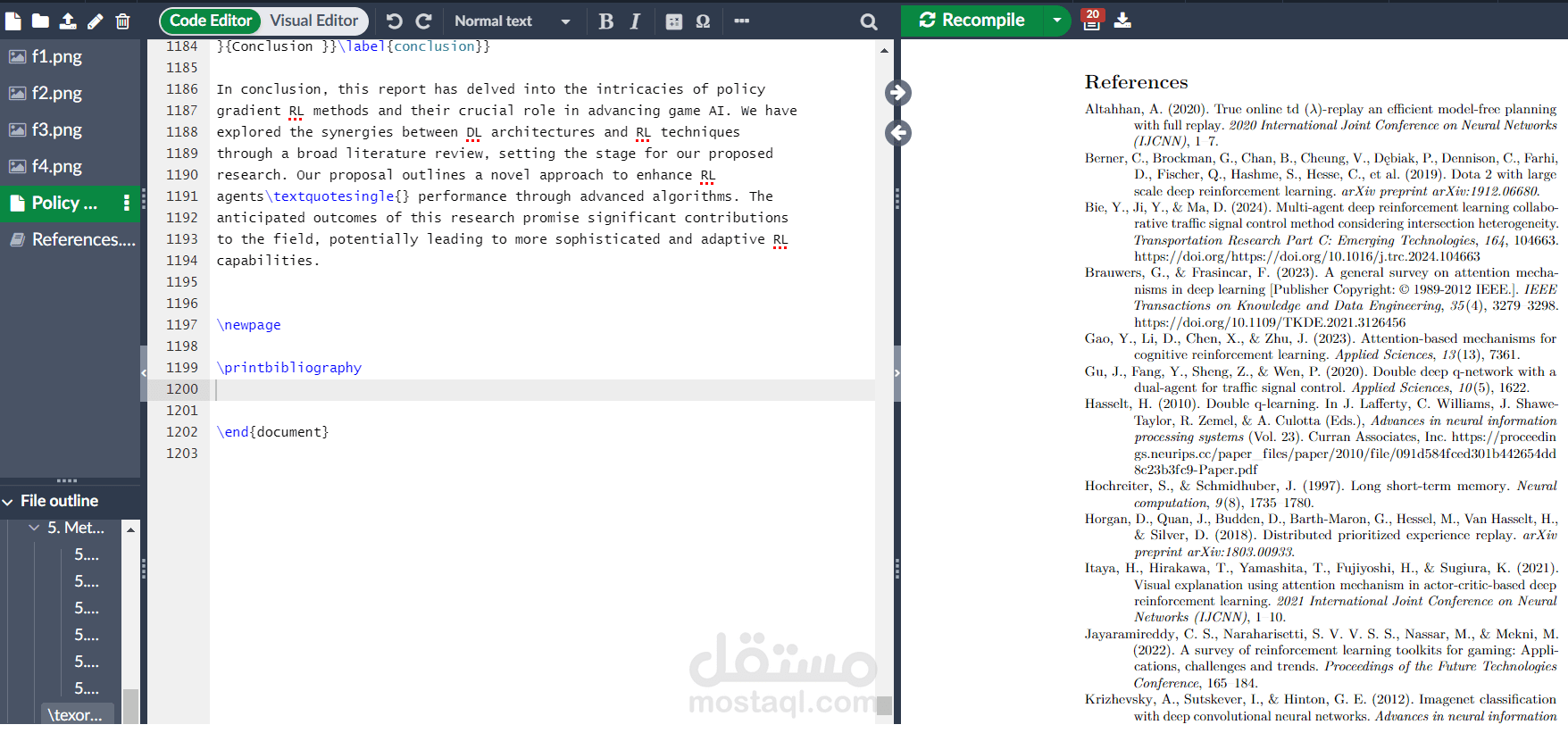 نقل يدوي لمحتويات البحث العلمي (صور، معادلات، جداول، مراجع….الخ) بشكل احترافي وجعلها بملف Latex مرتب ومنظم وباستخدام محرر overleaf