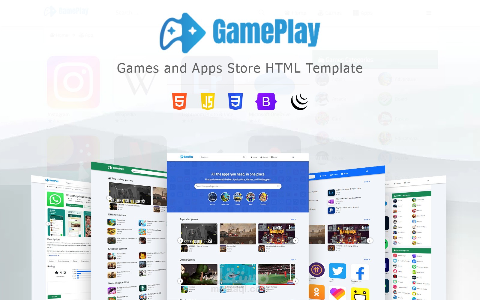 قالب HTML متعدد الاستخدامات مصمم خصيصًا لمتاجر الألعاب ومتاجر التطبيقات، يتميز بالتالي: