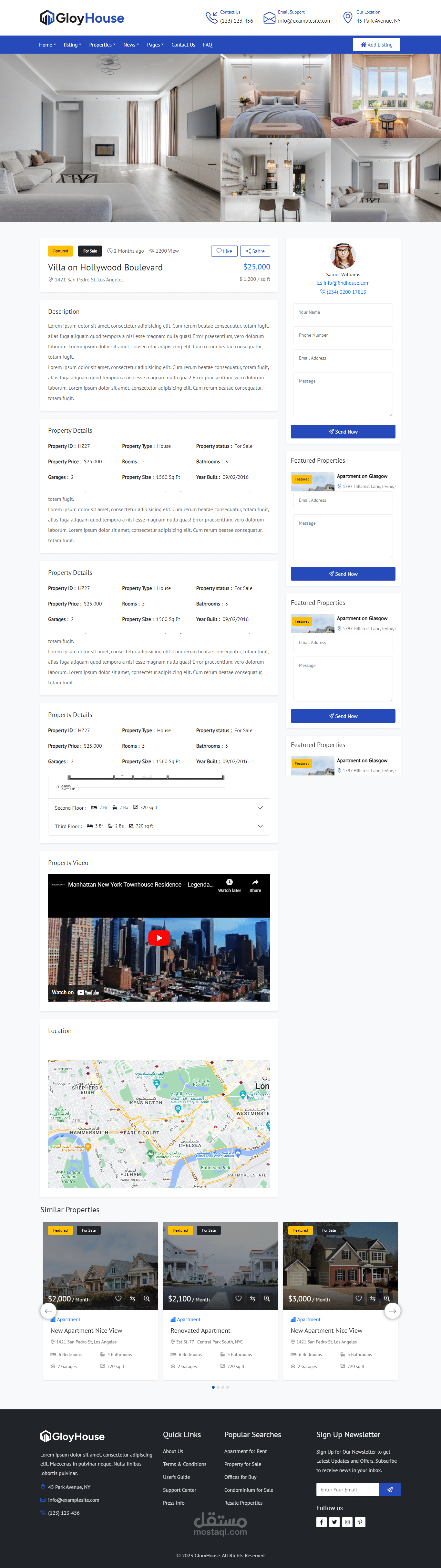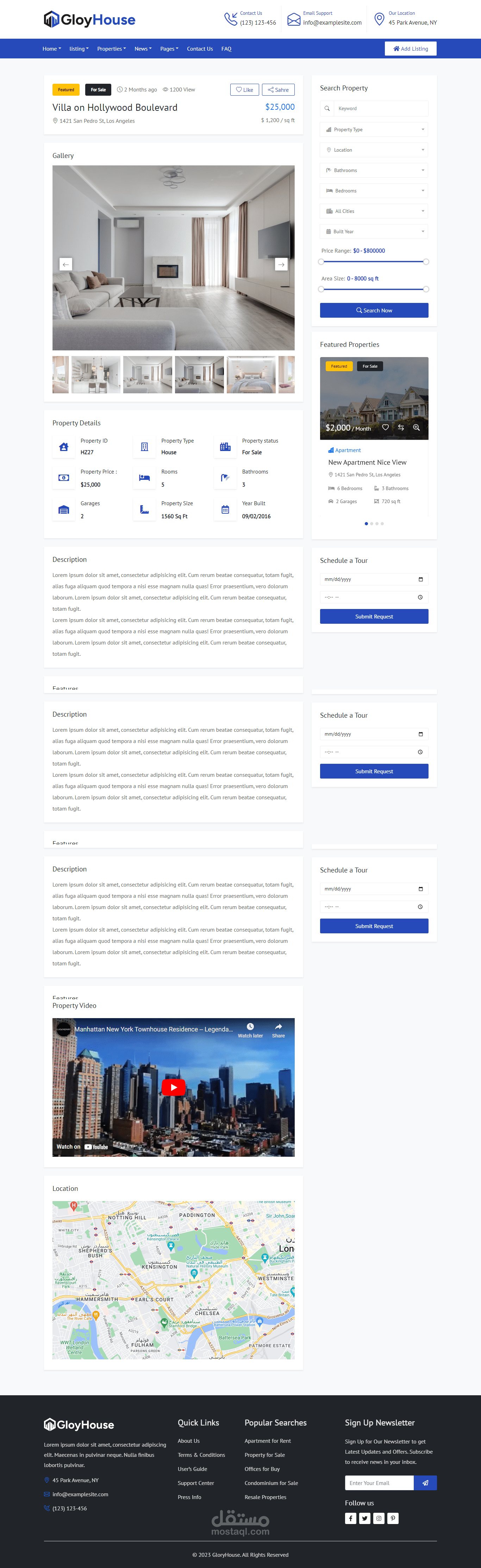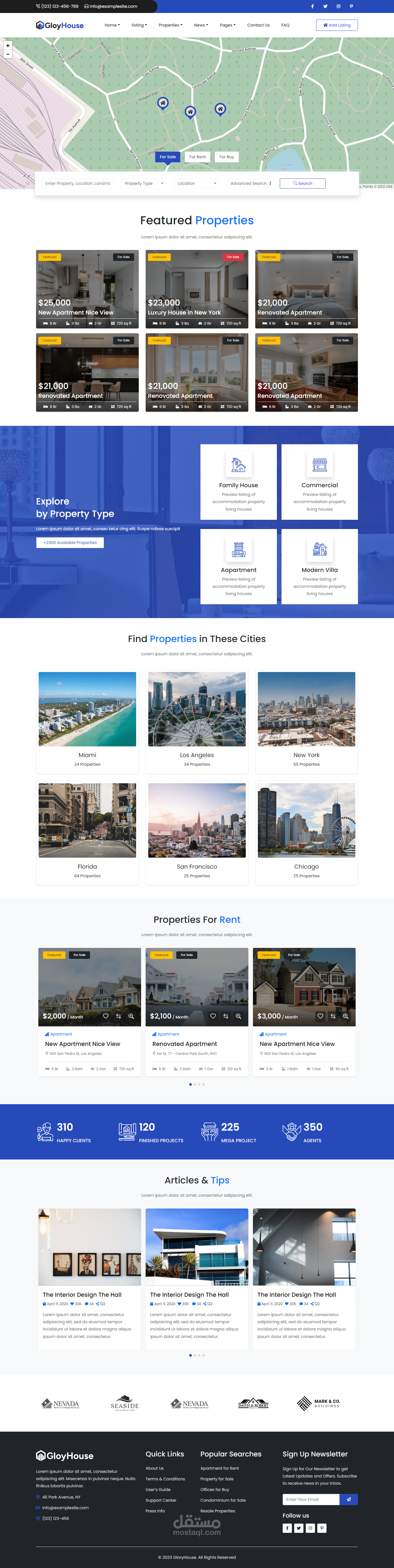 قالب HTML متعدد الاستخدامات مصمم خصيصًا لشركات العقارات والعقارات، يتميز بالتالي: