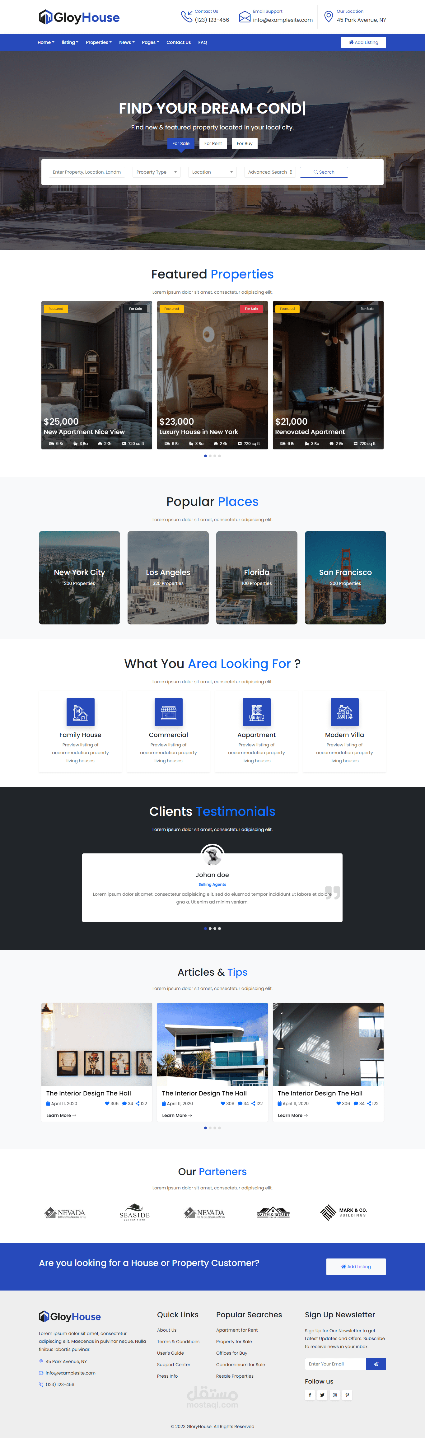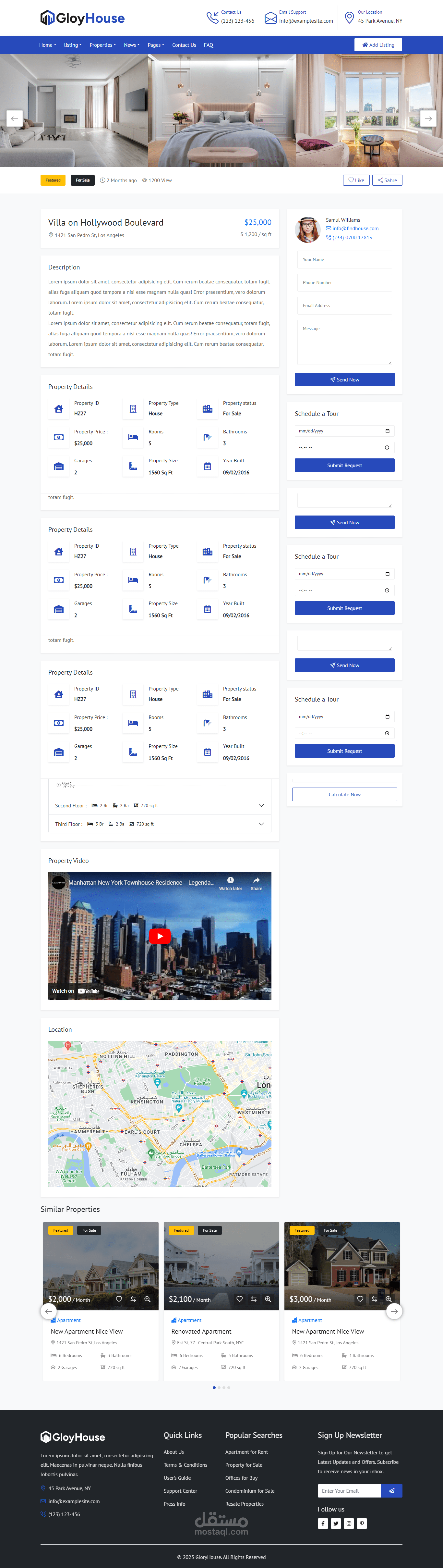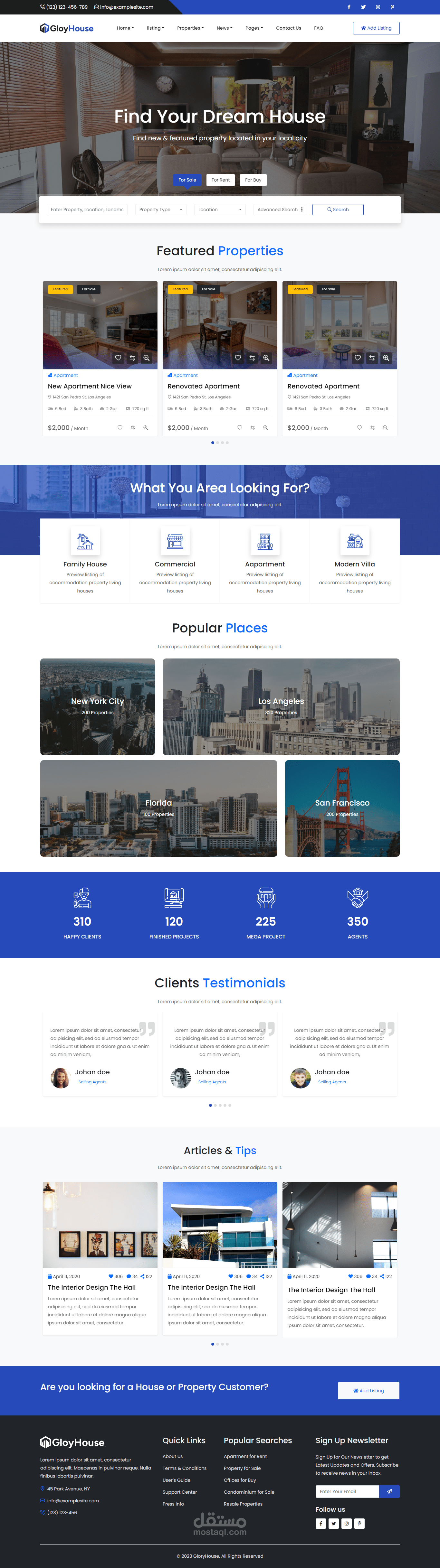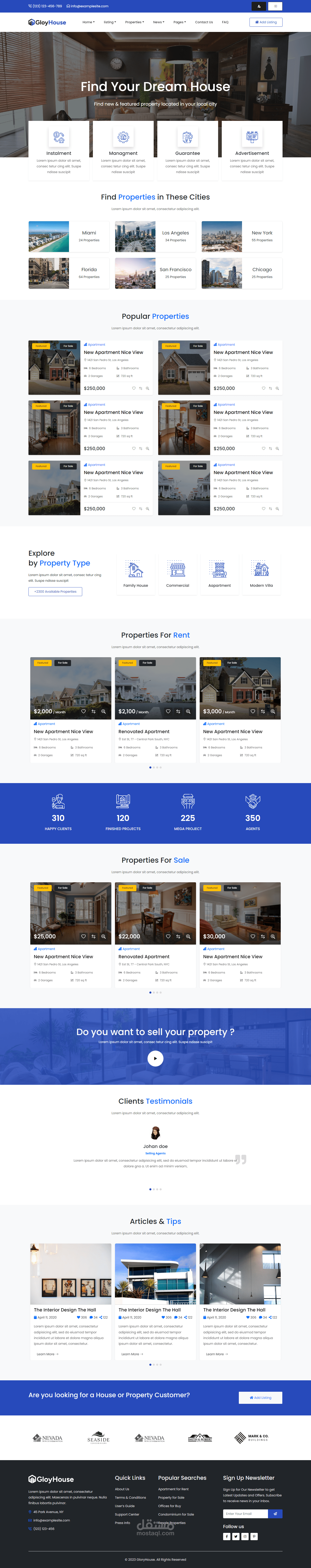 قالب HTML متعدد الاستخدامات مصمم خصيصًا لشركات العقارات والعقارات، يتميز بالتالي: