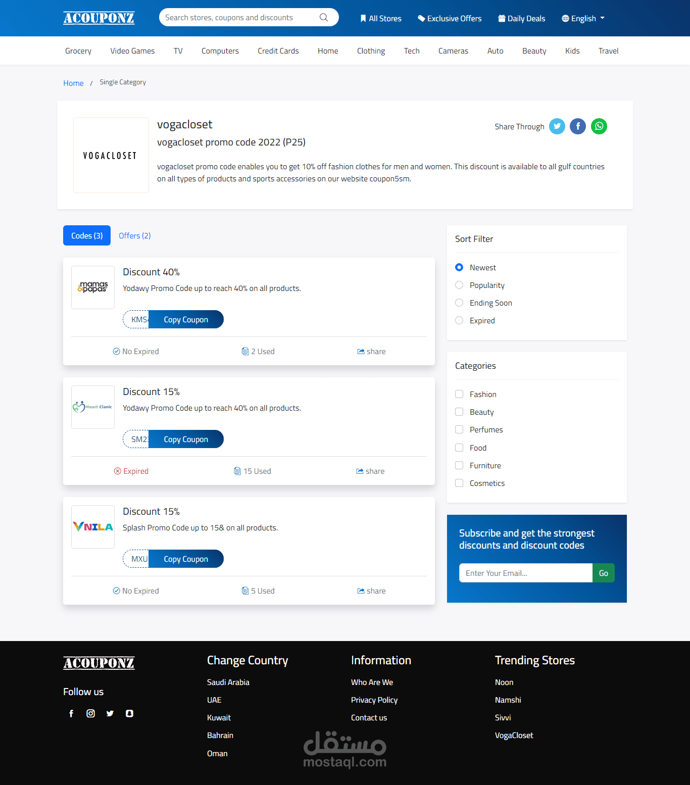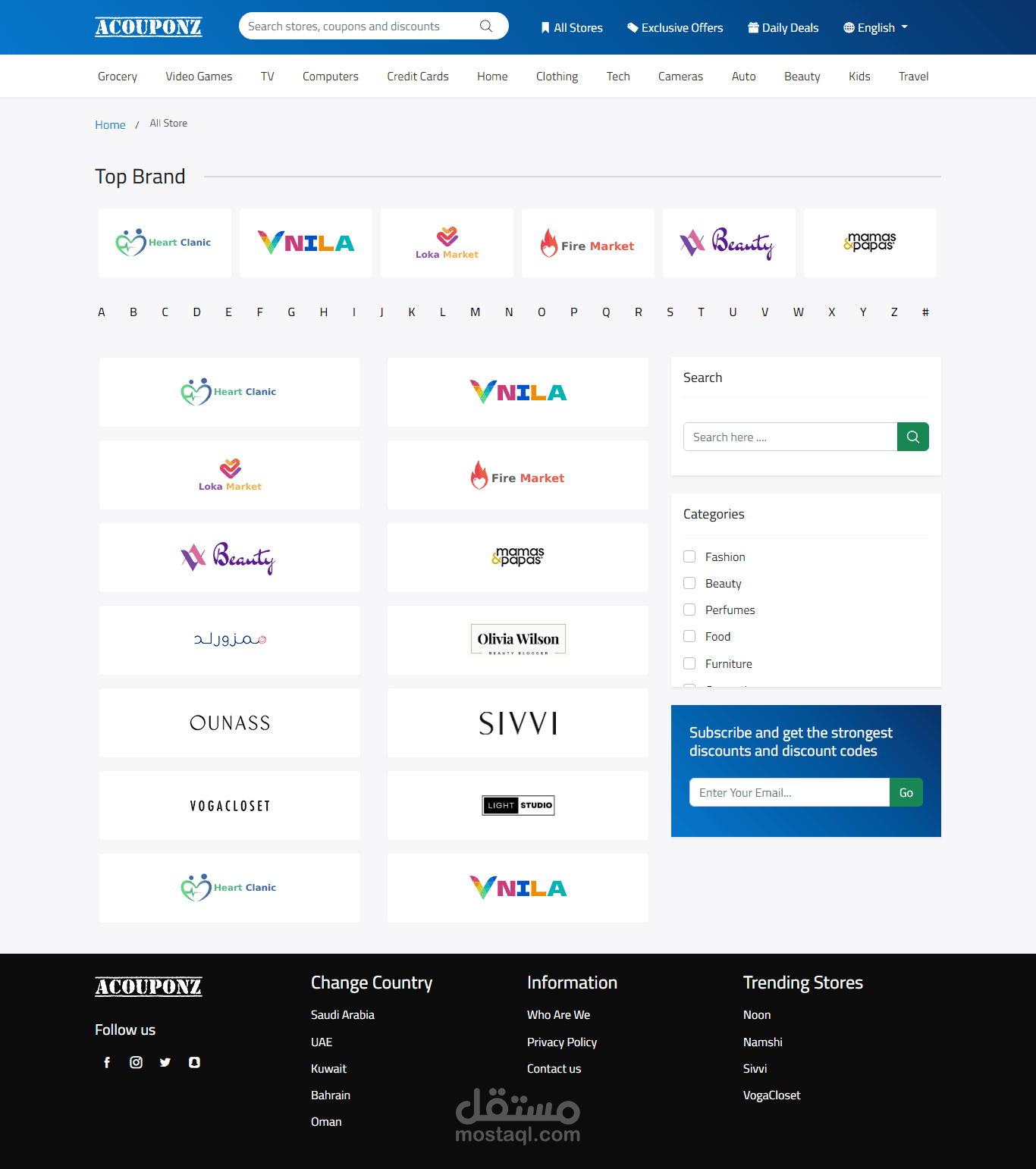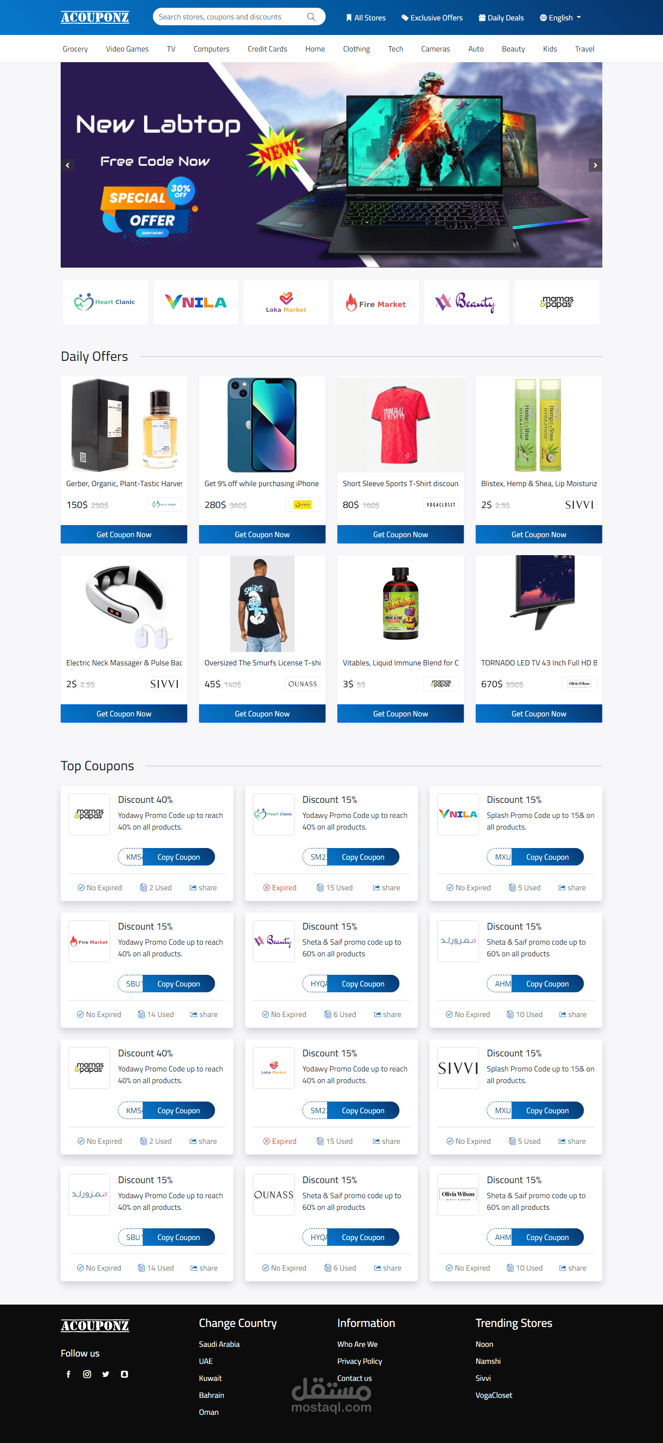 - **تصميم متعدد الصفحات**: يتضمن تصميمًا جاهزًا للعديد من الصفحات مثل الرئيسية وصفحات العروض والكوبونات.