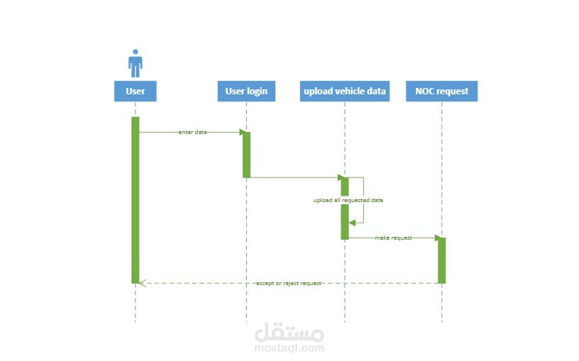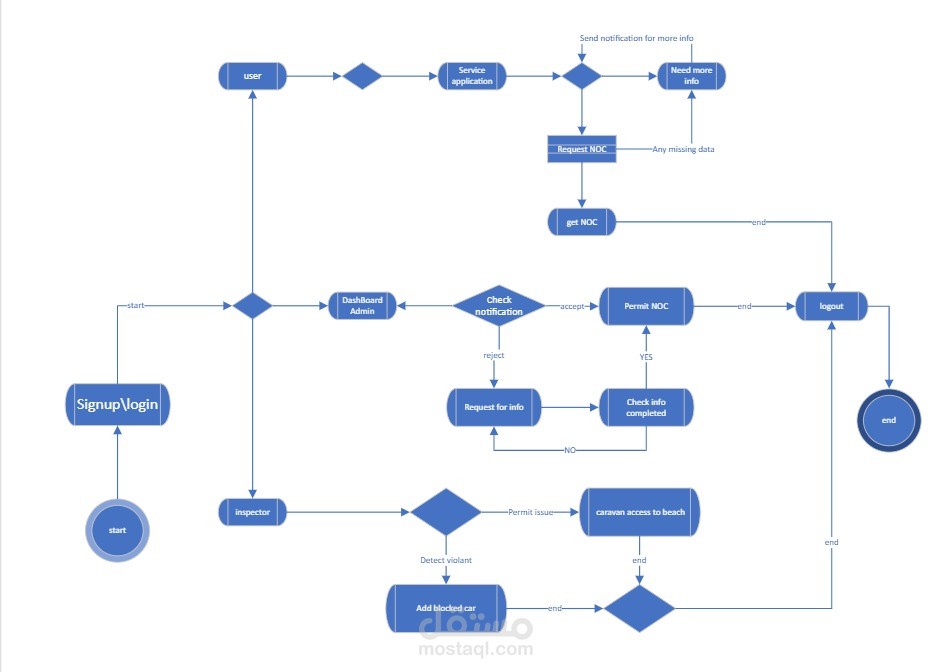 جمع المعلومات: تحديد المعلومات المطلوبة من المستخدمين للحصول على شهادة عدم الممانعة مثل الاسم، معلومات الاتصال، تفاصيل الكرفان، فترة التخييم، وغيرها.