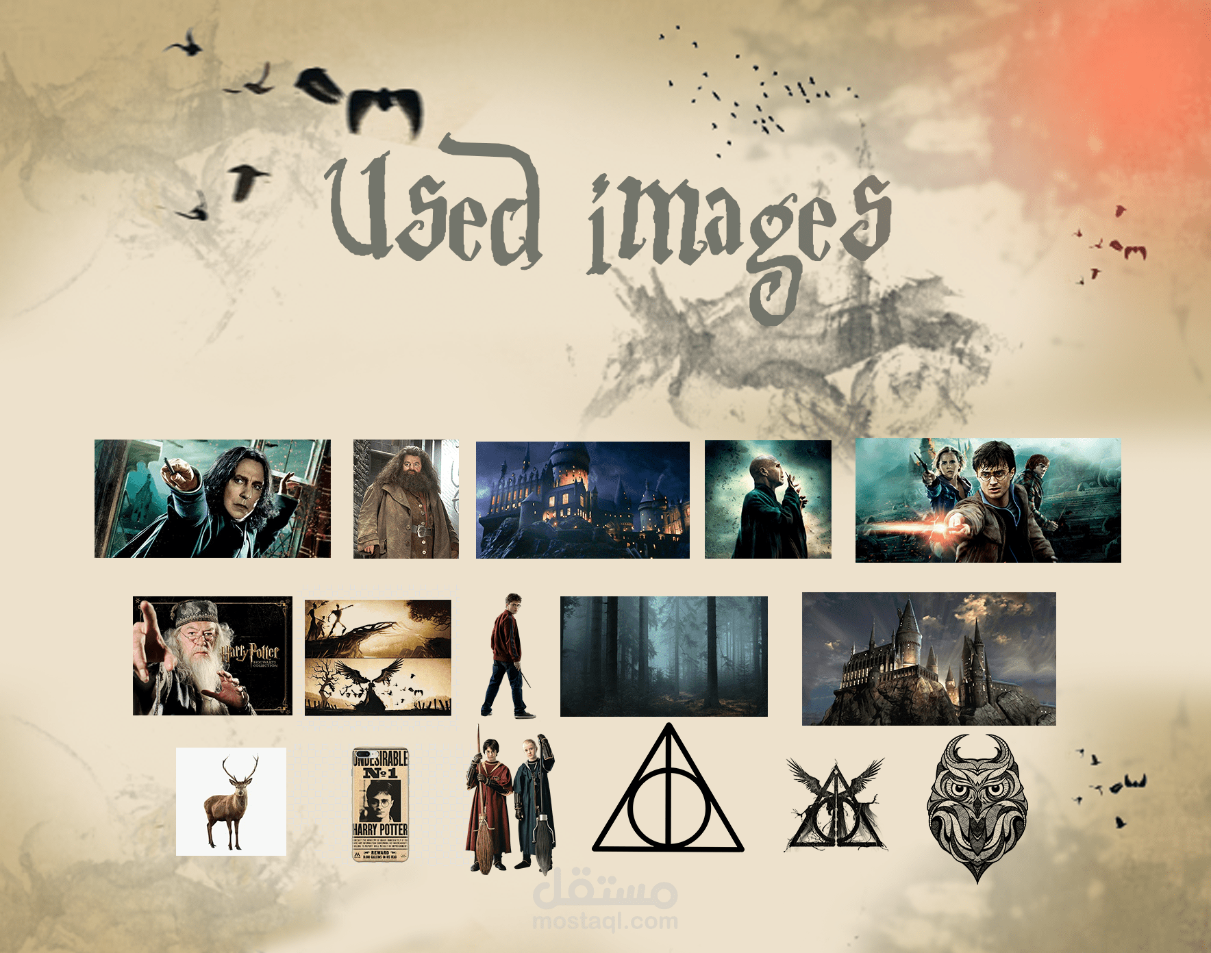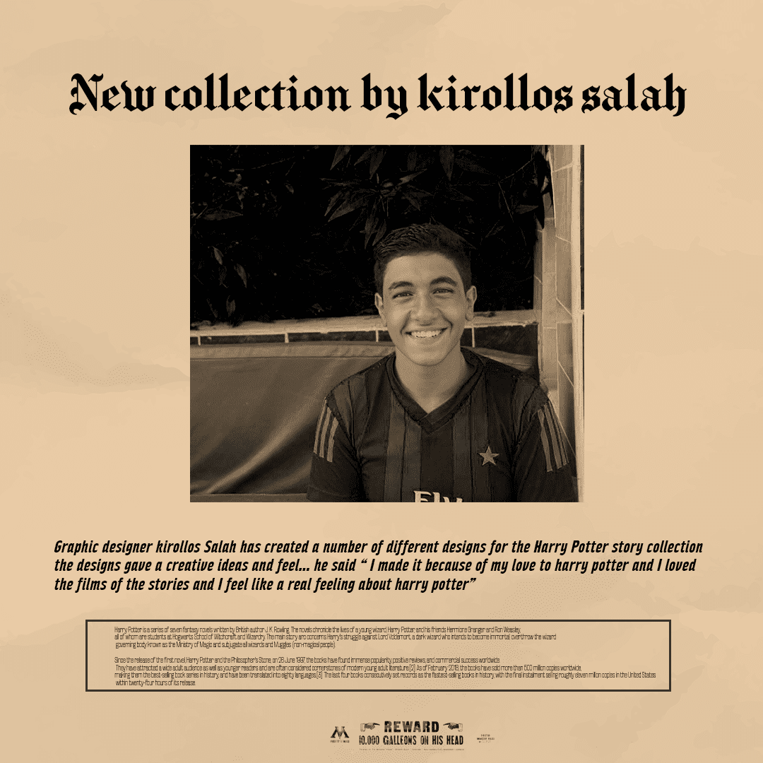 قمت بعمل بوسترات وتصميمات عادية وخلفيات للهاتف ايَضًا وحاولت ان اضع الثيم الخاص بهاري بوتر في جميع التصميمات الخاصة بهذه المجموعة