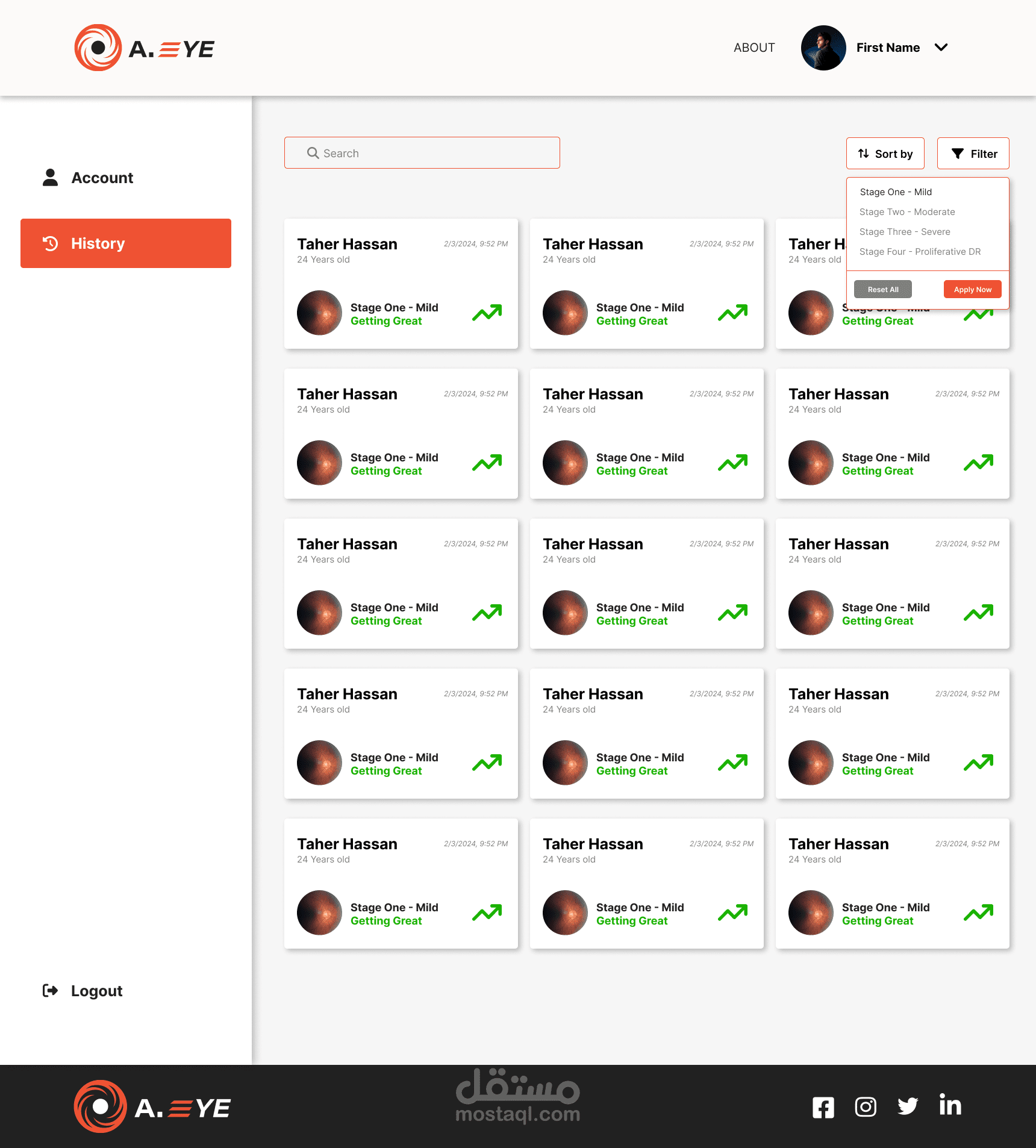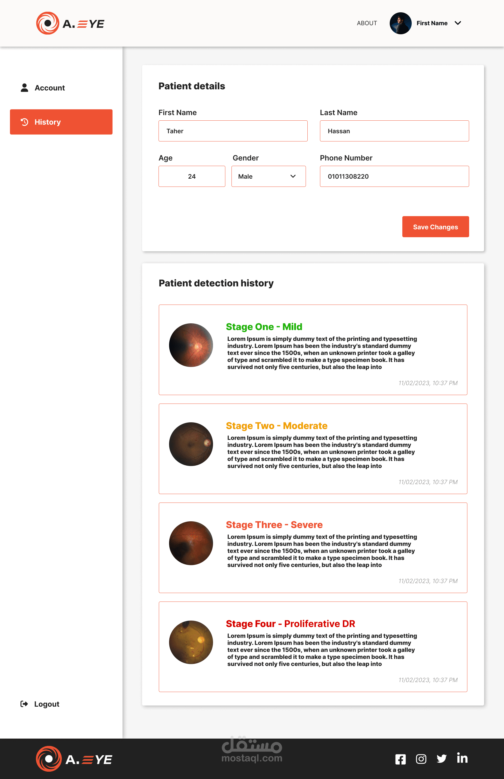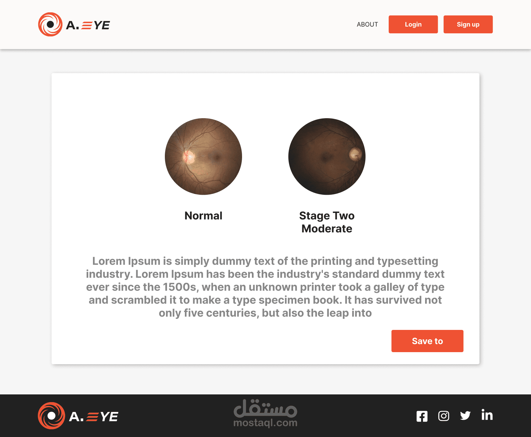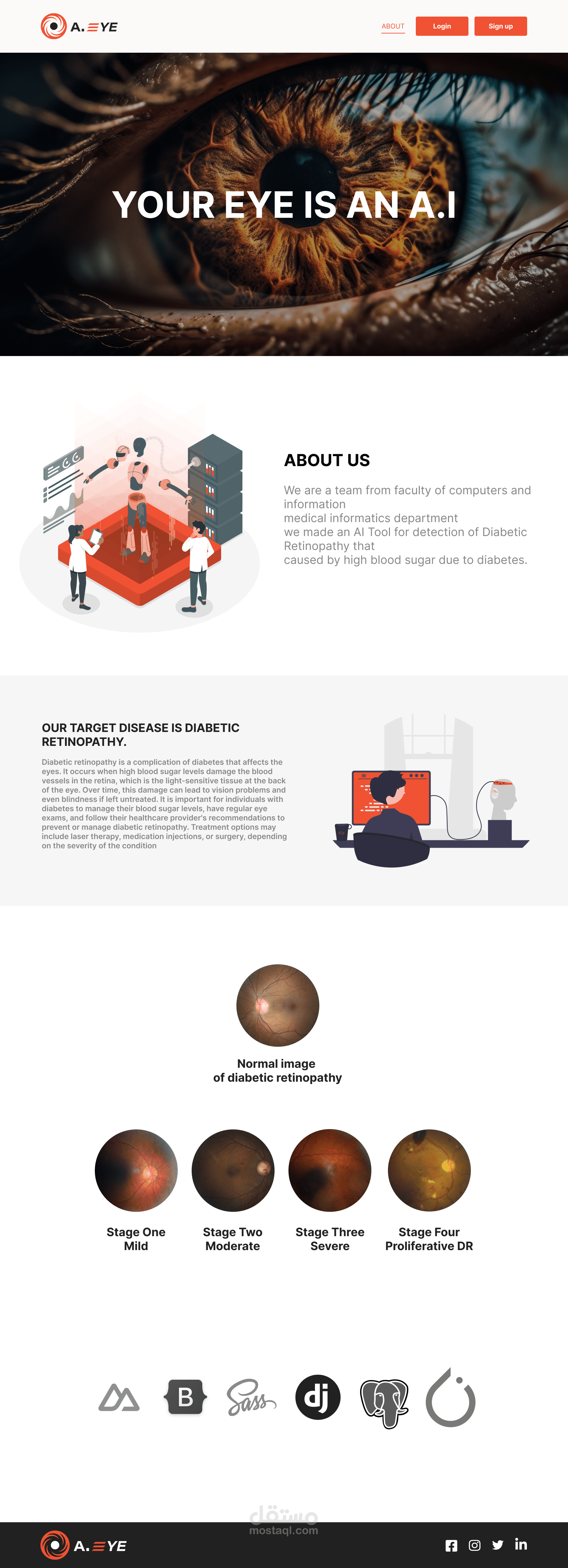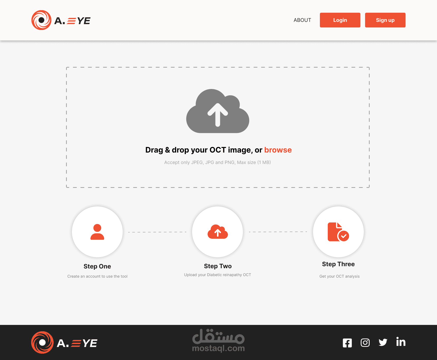 أداة A.EYE هي أداة تطبيق ويب تعتمد على الذكاء الاصطناعي لاكتشاف اعتلال الشبكية السكري من خلال رفع صورة OCT والانتظار حتى يقوم النموذج الذكي بإنتاج النتائج.