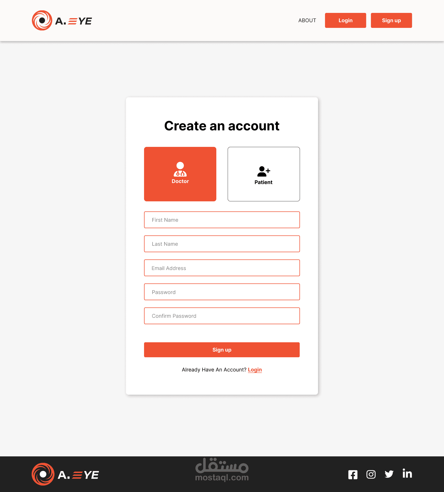 يمكن للمستخدمين تسجيل الدخول كأطباء أو مرضى.