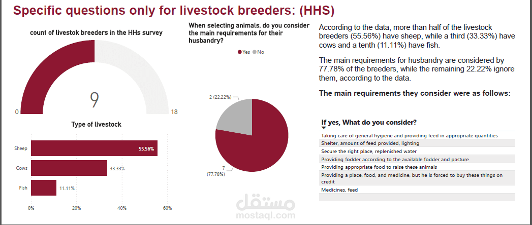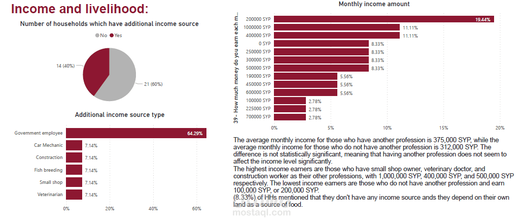 تحليل بيانات لمشروع زراعي يدرس أنواع المحاصيل التي يتم زراعتها، الحيوانات التي يتم تربيتها، الدخل الشهري للعوائل من أعمال الزراعة أو تربية المواشي.