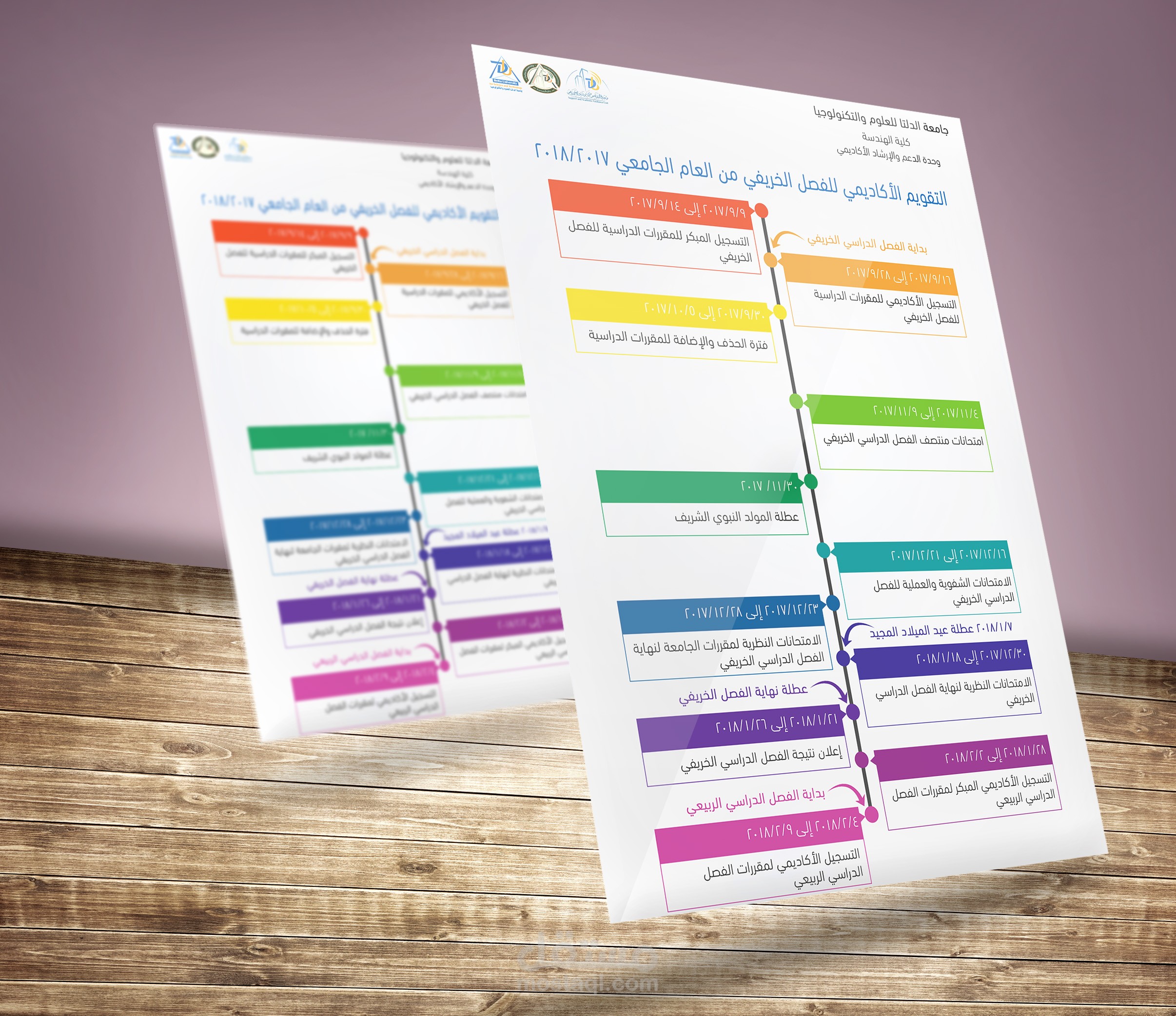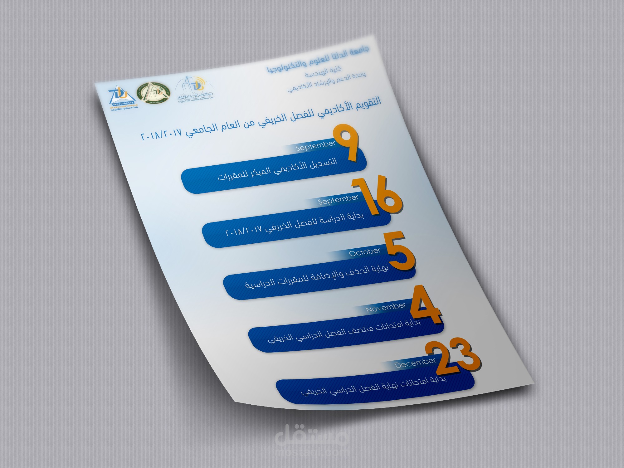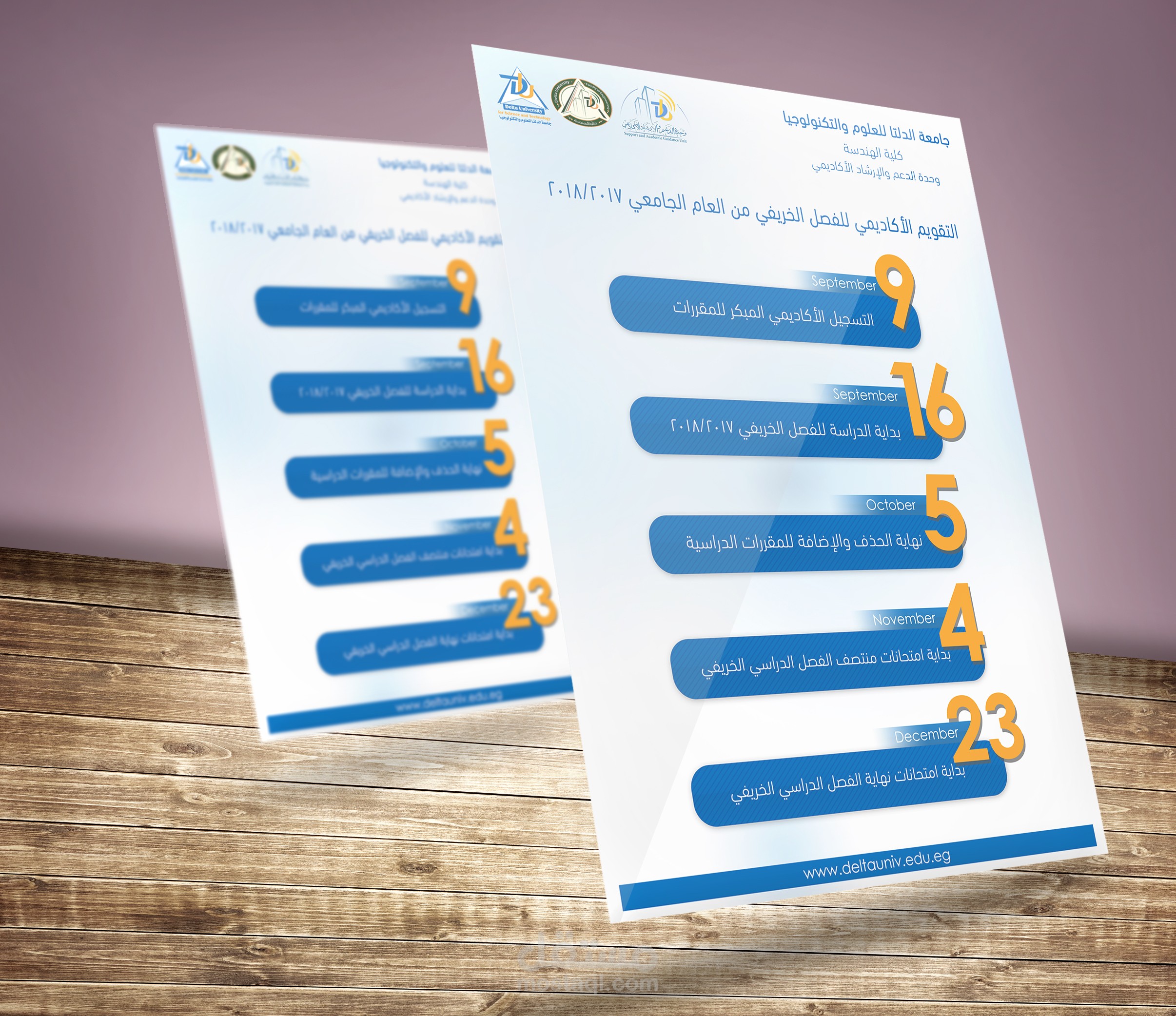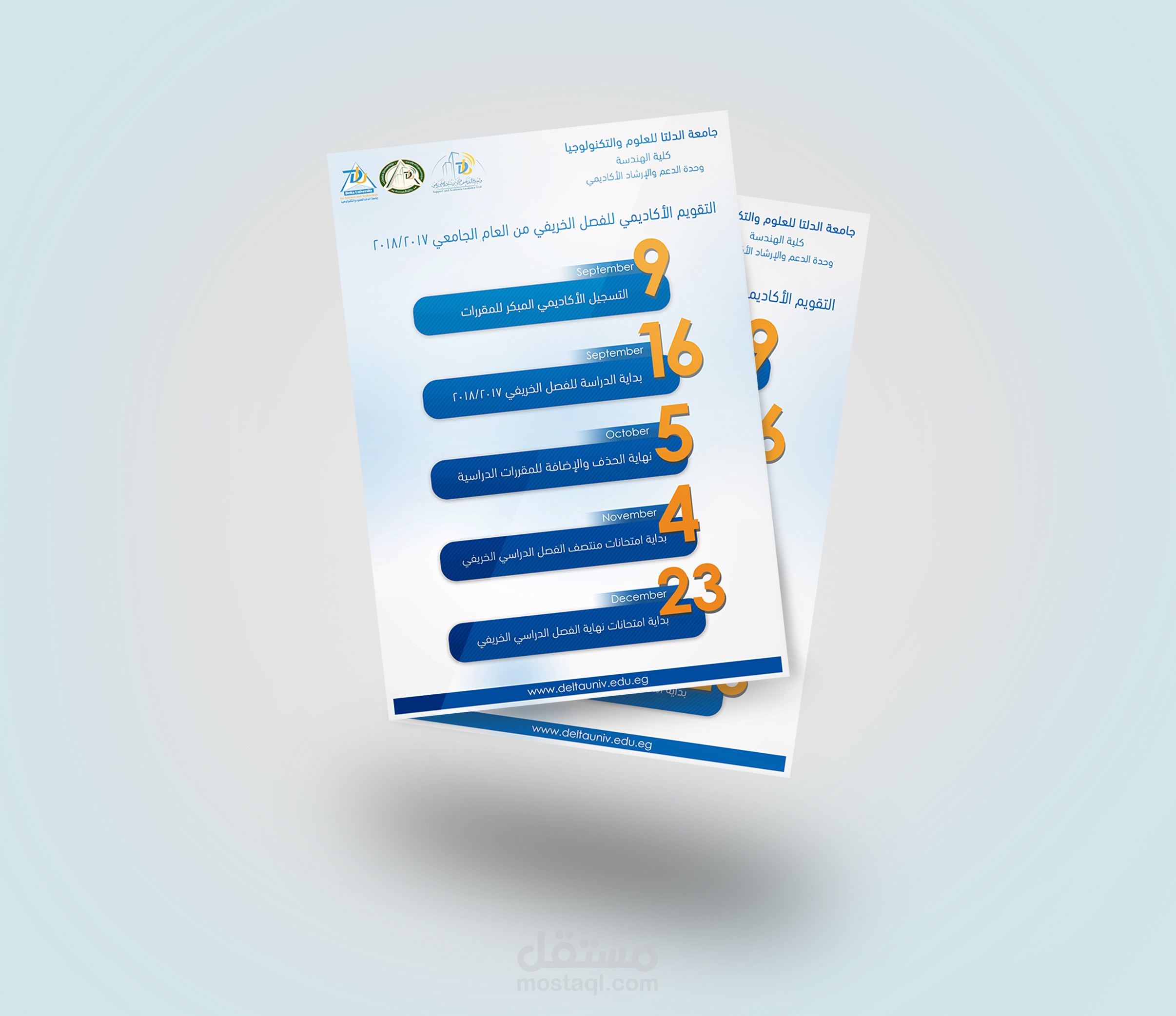 تصميم مطويات لجامعة الدلتا للعلوم والتكنولوجيا لتوضيح التقويم الأكاديمي للعام الدراسي 2017/2018