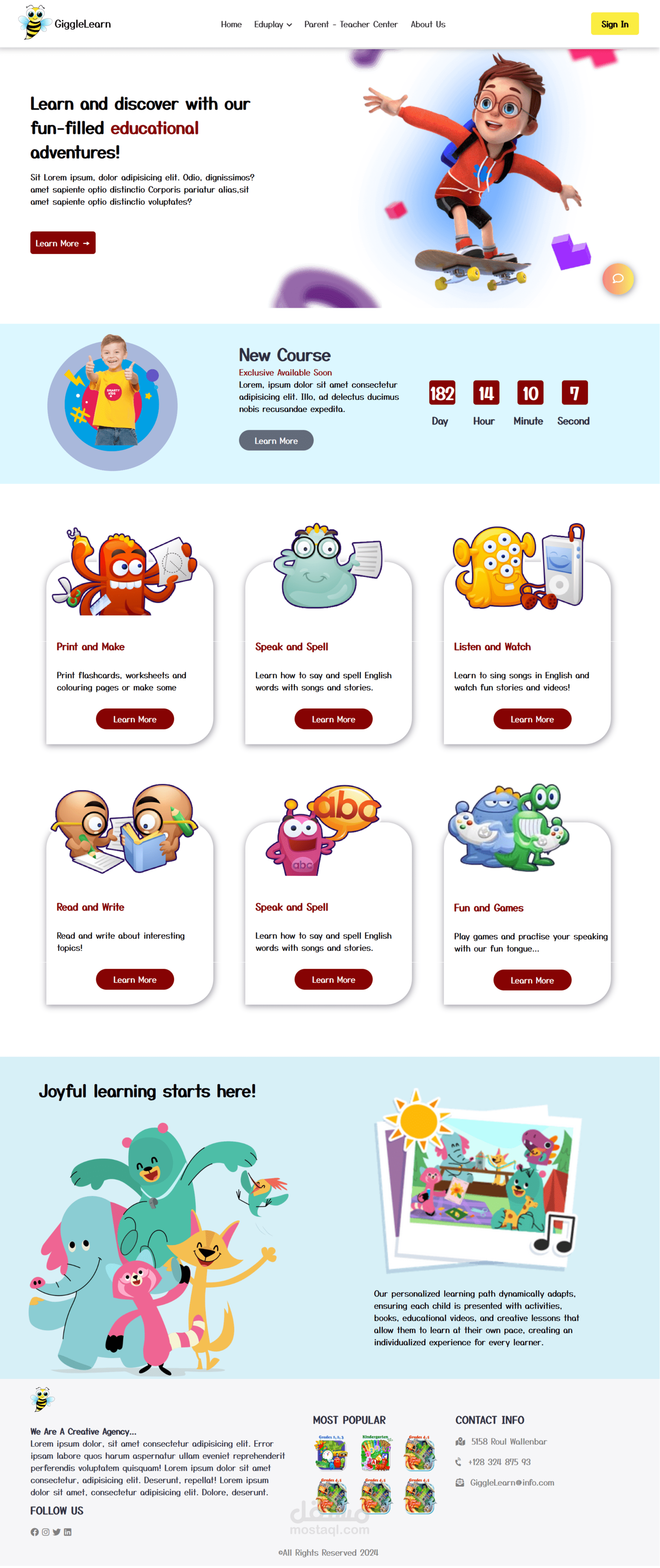 GiggleLearn is an engaging and educational website designed to teach children essential skills in Math, Science, Arabic, and English through a variety of fun and interactive games. Our platform combines learning with play, ensuring that children stay motivated and excited about their studies.