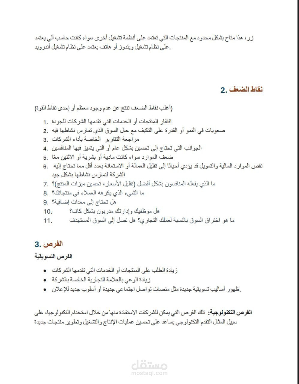 - استعرضت نماذج وتقارير سابقة لتحليل SWOT من مختلف الصناعات لتحديد أفضل الممارسات.