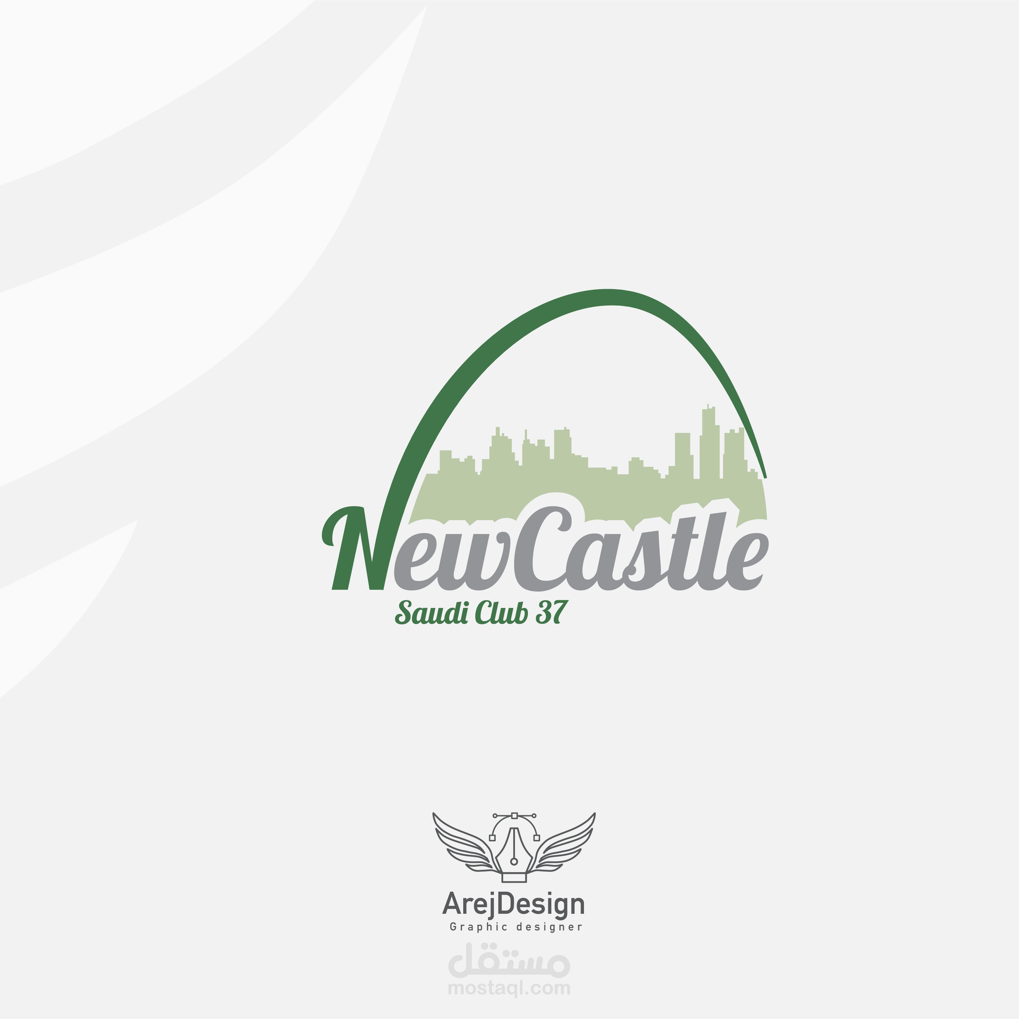 تم رسم سكتش لاسم المدينة بالحروف الانجليزية ودمج النص بتصميم معلم المدينة وهو الجسر المعلق الخاص بمدينة نيوكاسل البريطانية
