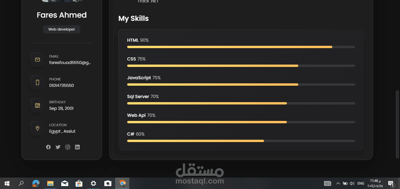 my protofile using Html,Css with feautred