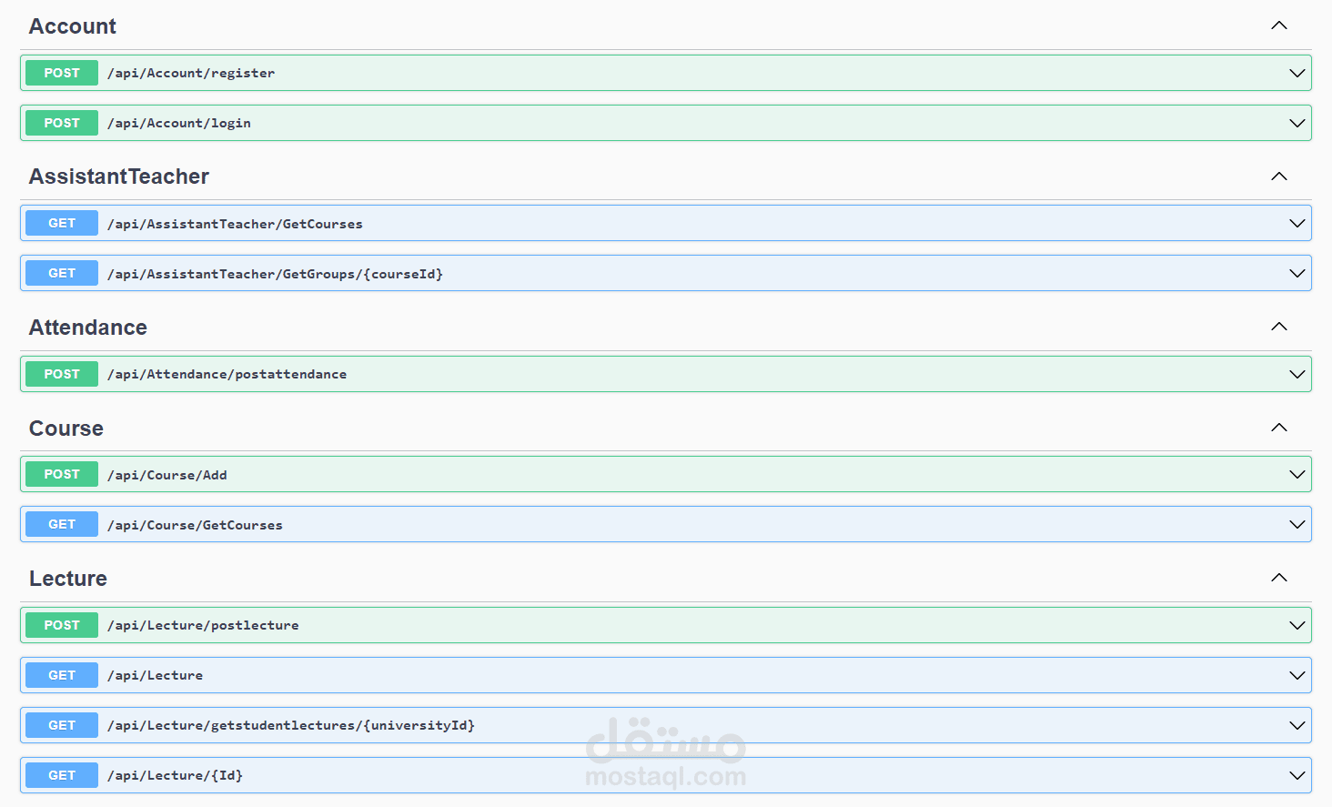This app is backend for moblie app with flutter that created to store the classes and the students data and the schedules so the student can attent only his class any class will refuse hem and the app do this with generating QR Code so the Student can scan it to attend.