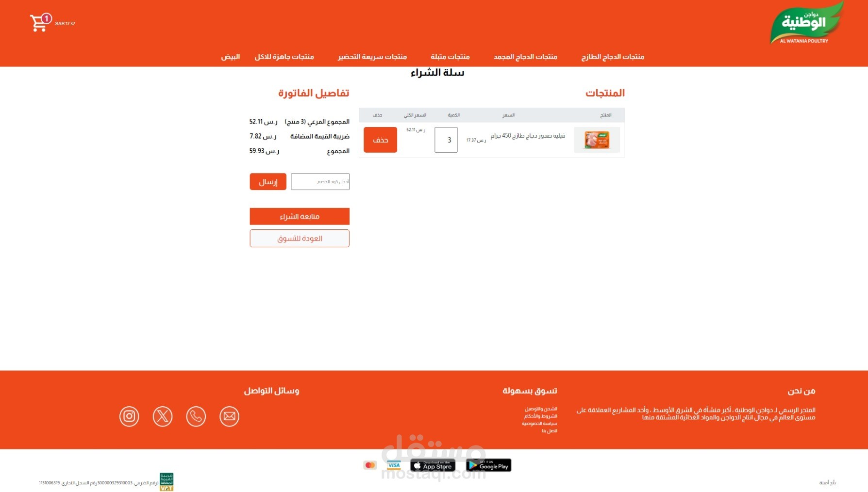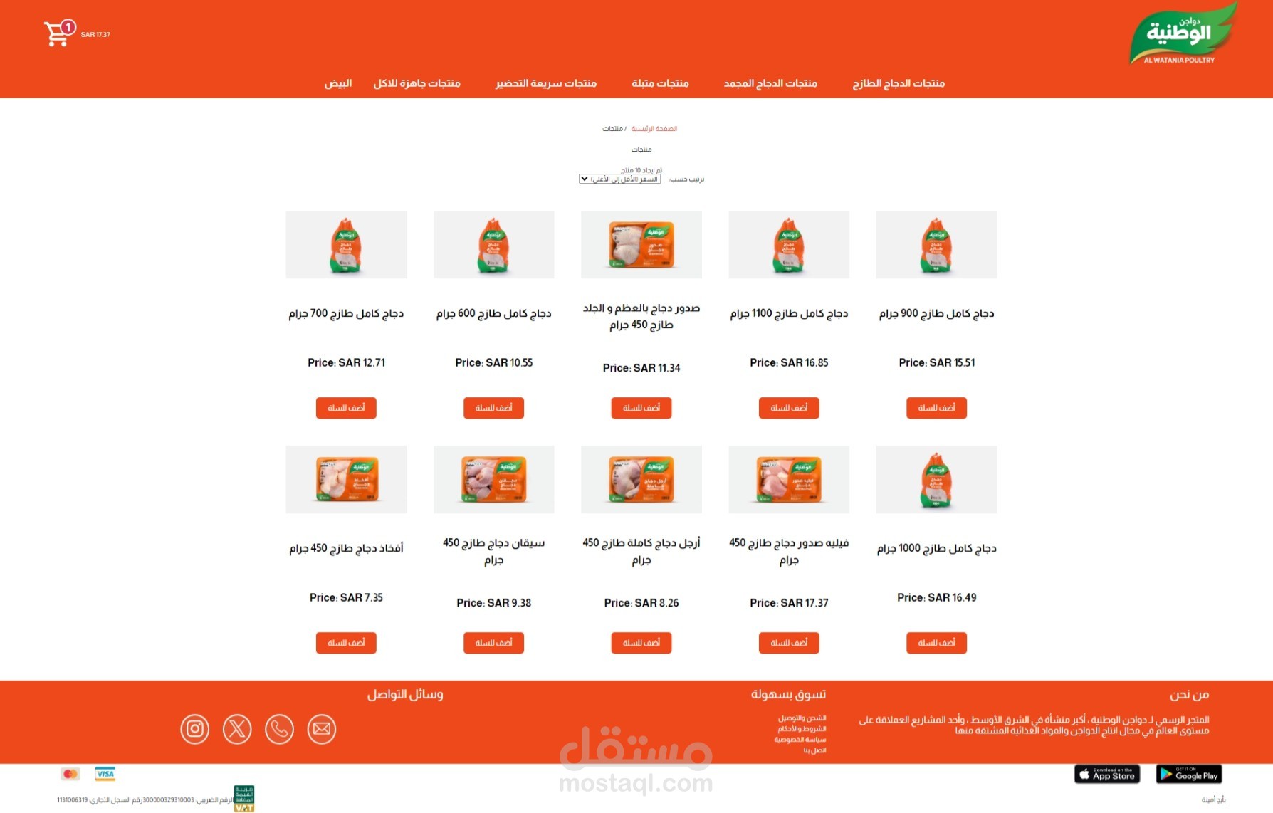 باحدث التقنيات مع اضافة سلة للمشتروات واضافة الاسعار وحساب العدد والسعر واتمام المعاملات