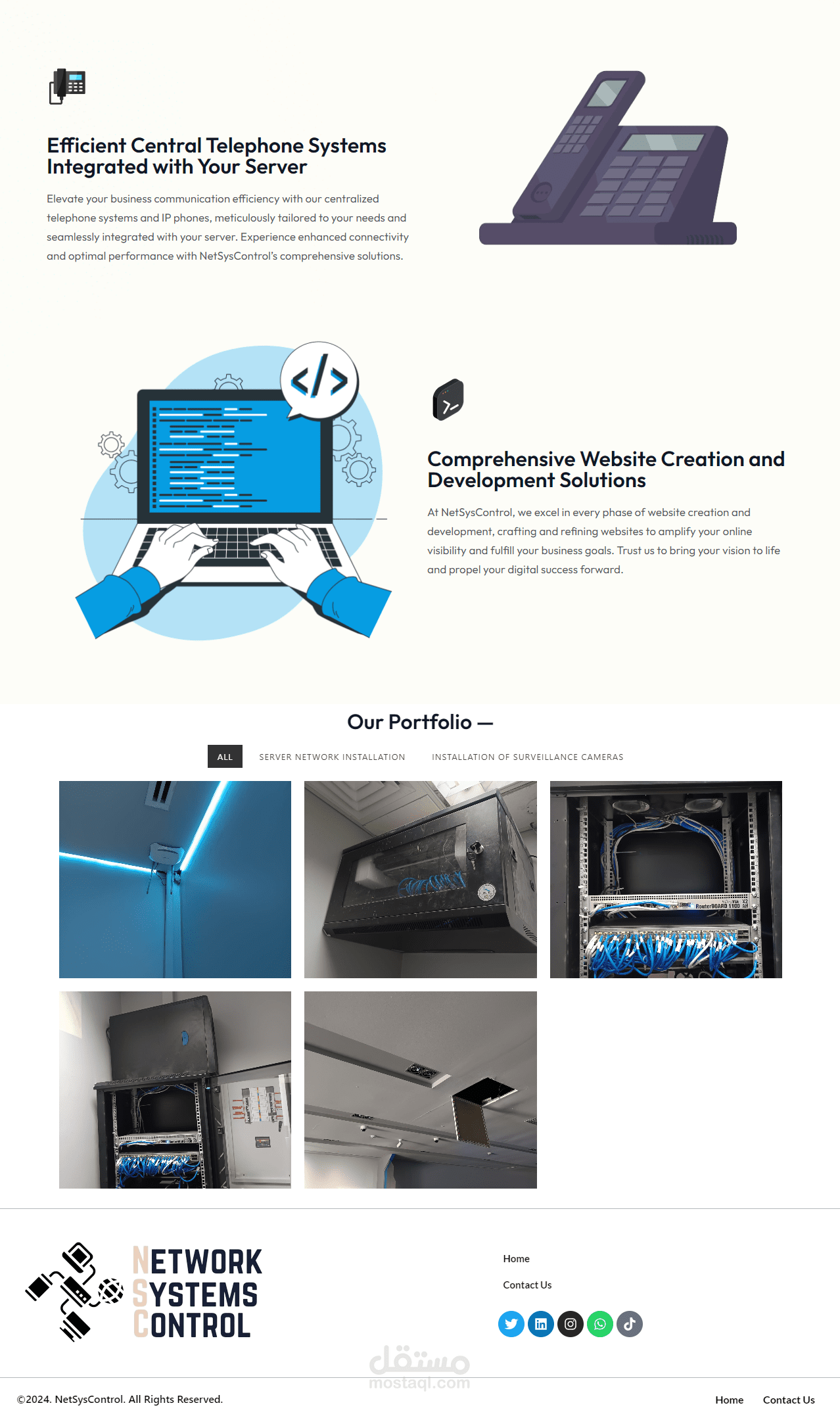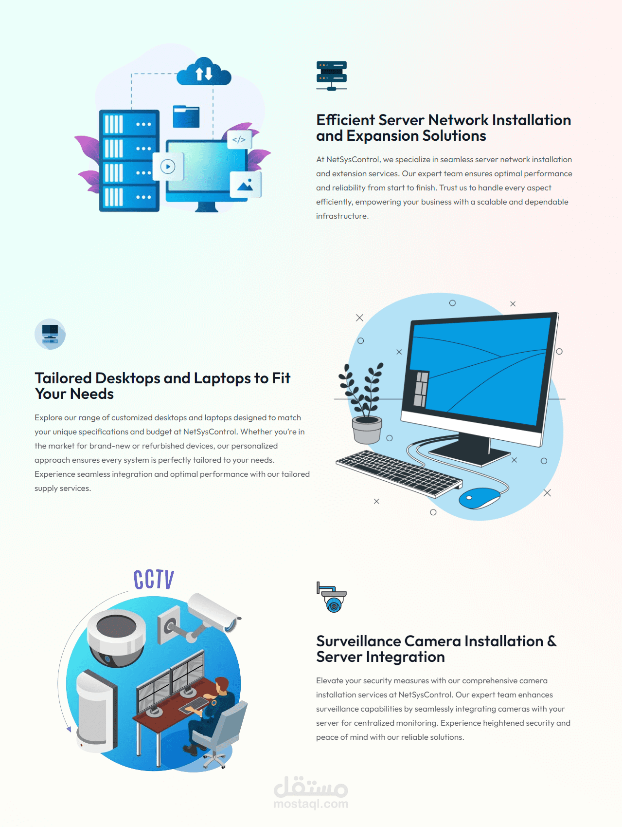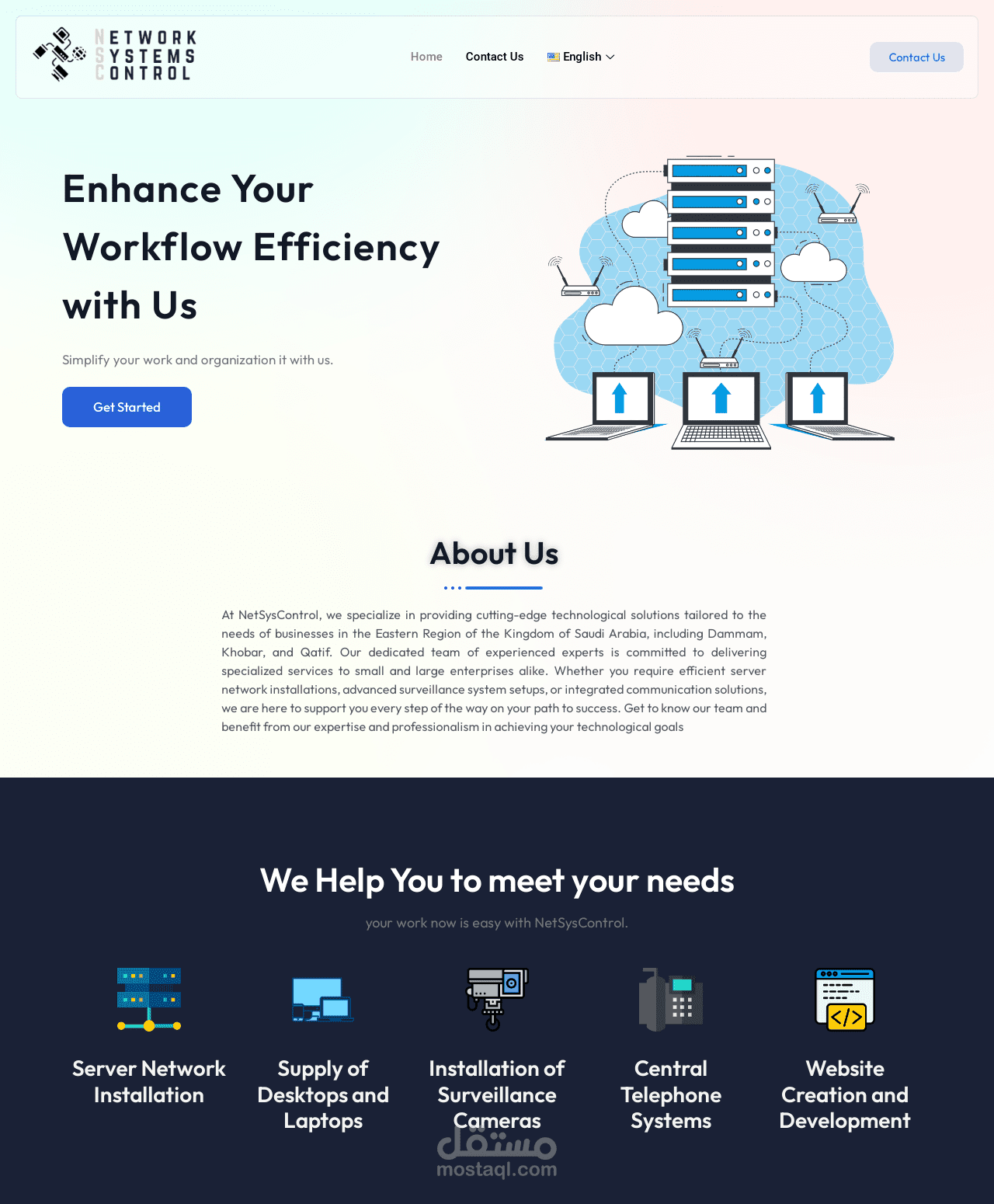 إنشاء وتصميم صفحة هبوط لشركة it من الصفر يحتوي علي جميع الخدمات التي يقدمونها معروضه بشكل جميل ومبسط باللغتين (العربية - الإنجليزية)