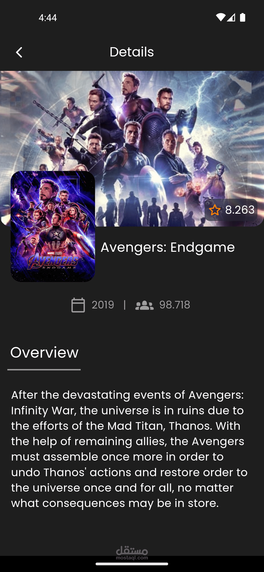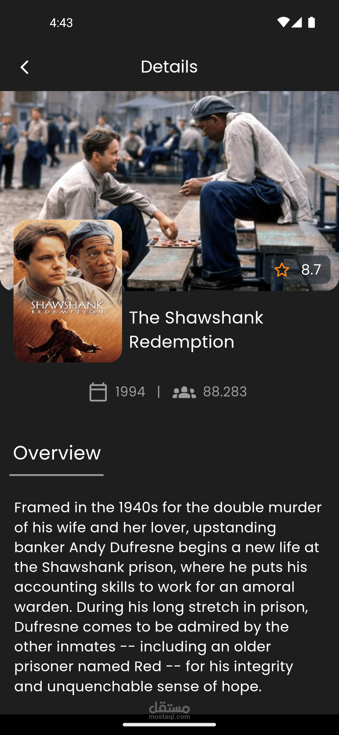 عند الضغط على صورة أي فيلم في القوائم المعروضة، يتم الانتقال إلى صفحة تعرض تفاصيل الفيلم: