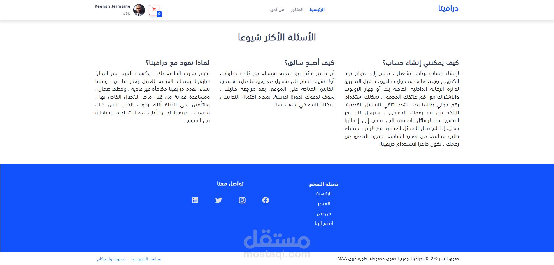 وكنت المسؤول عن بناء تطبيق الويب للادارة وحسابات السائقين ومالكي السيارات والموقع ليكون نافذة للزوار لاضافة طلبيات وتوصيلات من السائقين ( Front - End by Vue Framework).