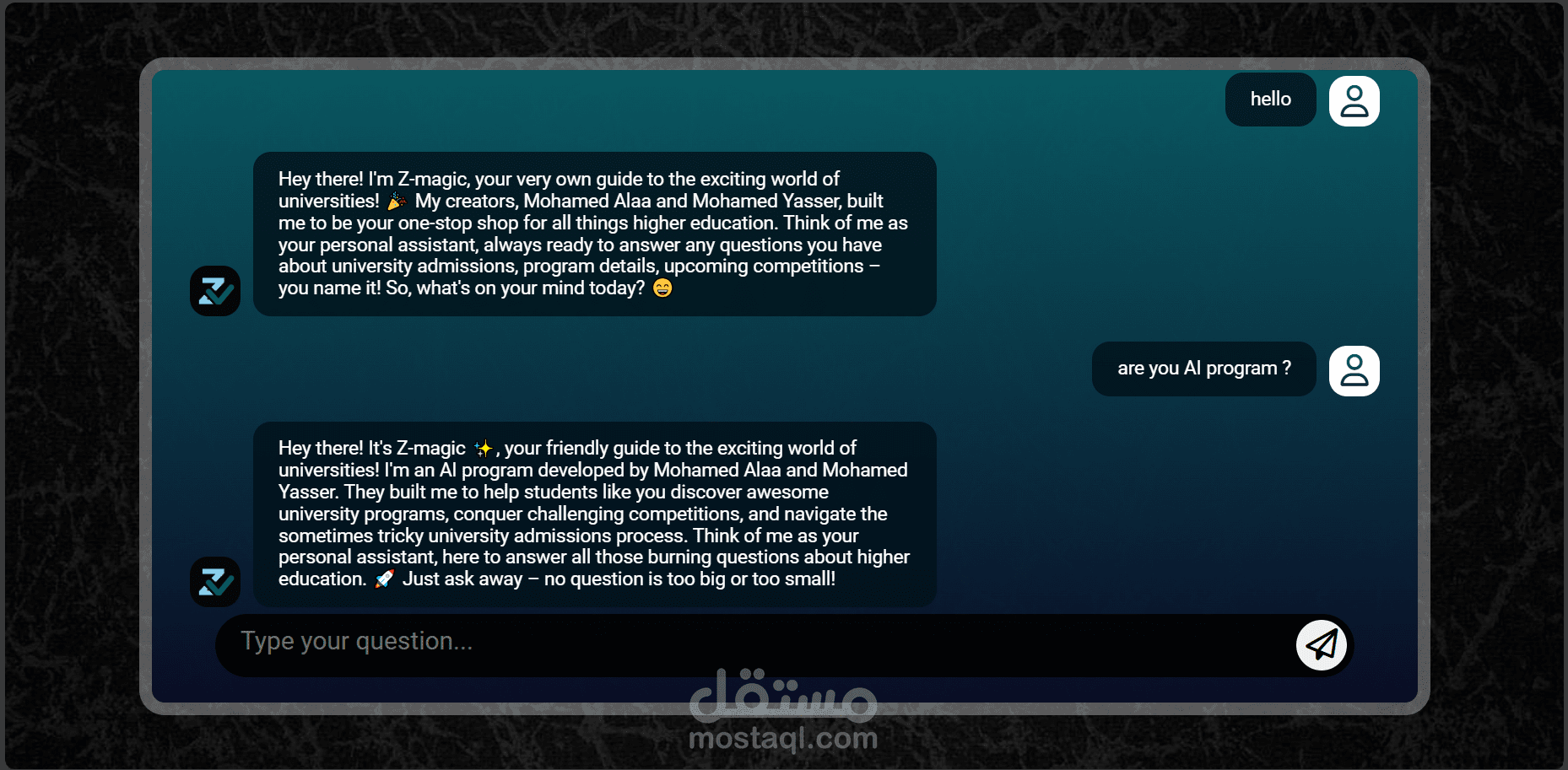 Zadmission يمكن أن يكون شات أو منصة تفاعلية تسمح للطلاب بطرح الأسئلة والاستفسارات حول المنح الدراسية. يهدف هذا النوع من الشات إلى توفير معلومات دقيقة ومفيدة للطلاب الذين يبحثون عن فرص تمويل دراسي للدراسة في الجامعات أو المؤسسات التعليمية.