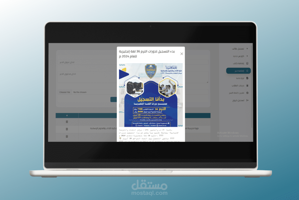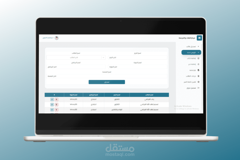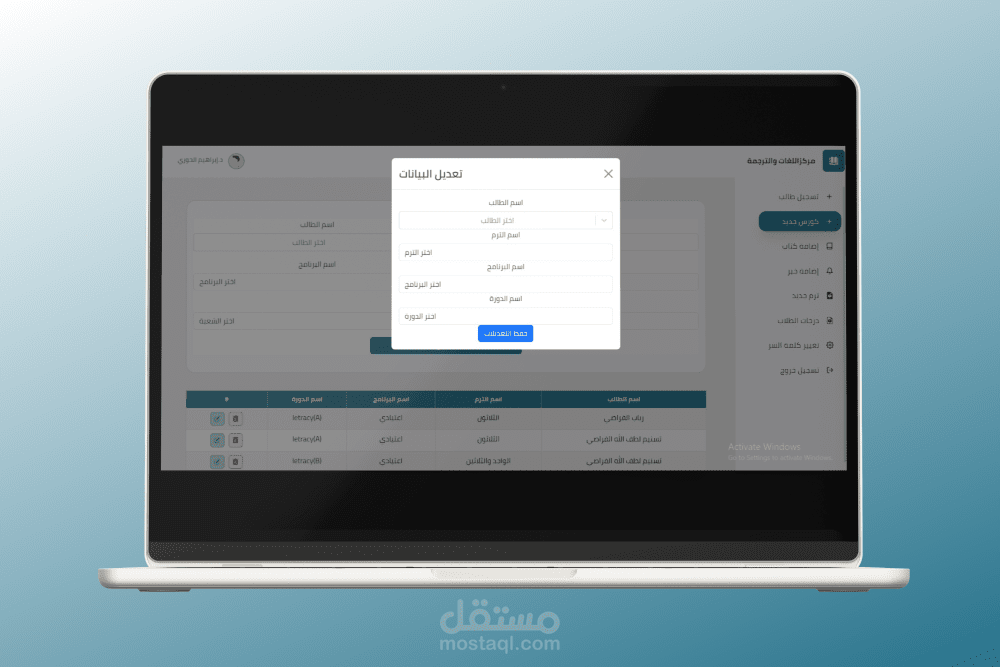 نظام لإدارة تطبيق طالب تابع لمعهد لغات ، تم تصميمه وبرمجته باستخدام reactjs - php - mysql - react bootstrap