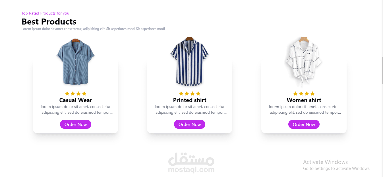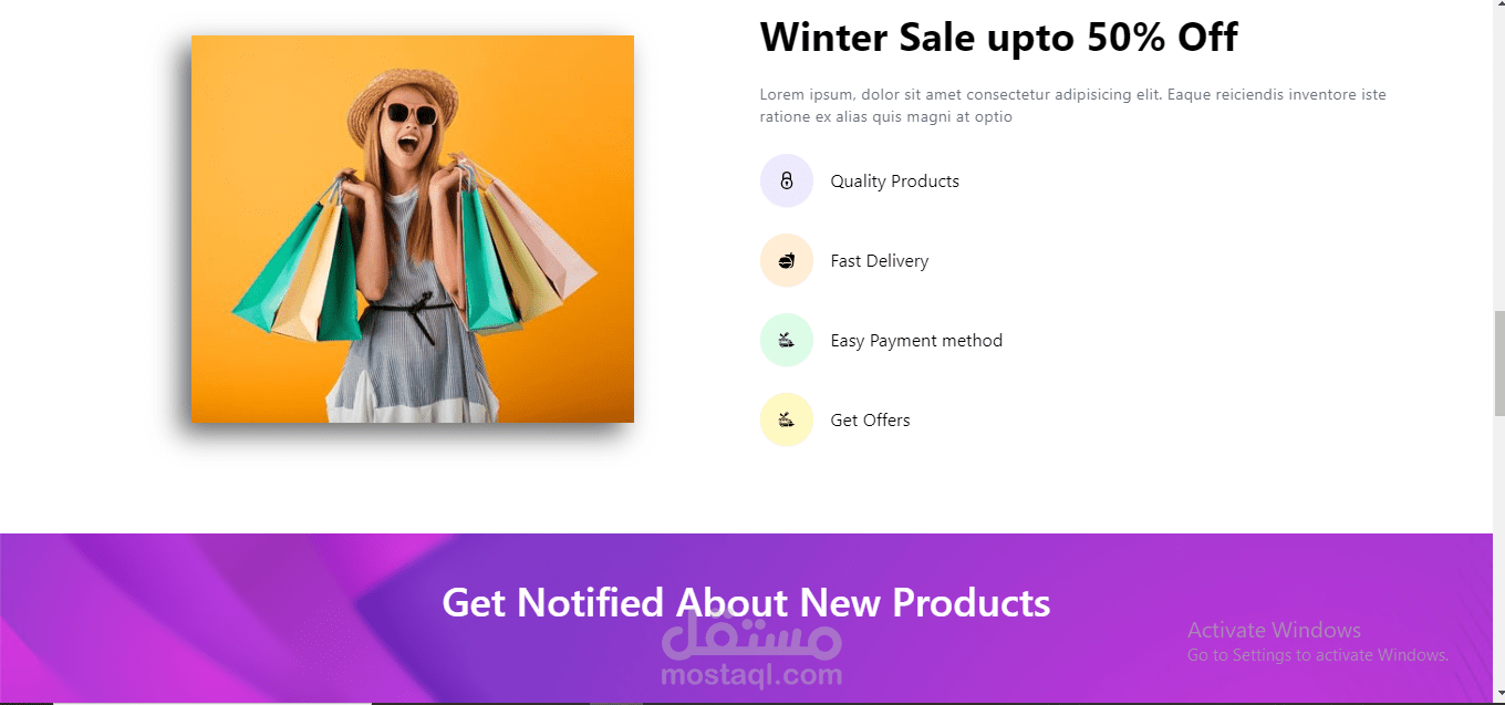 -يتكون التصميم من قسم Hero Section , Products ,