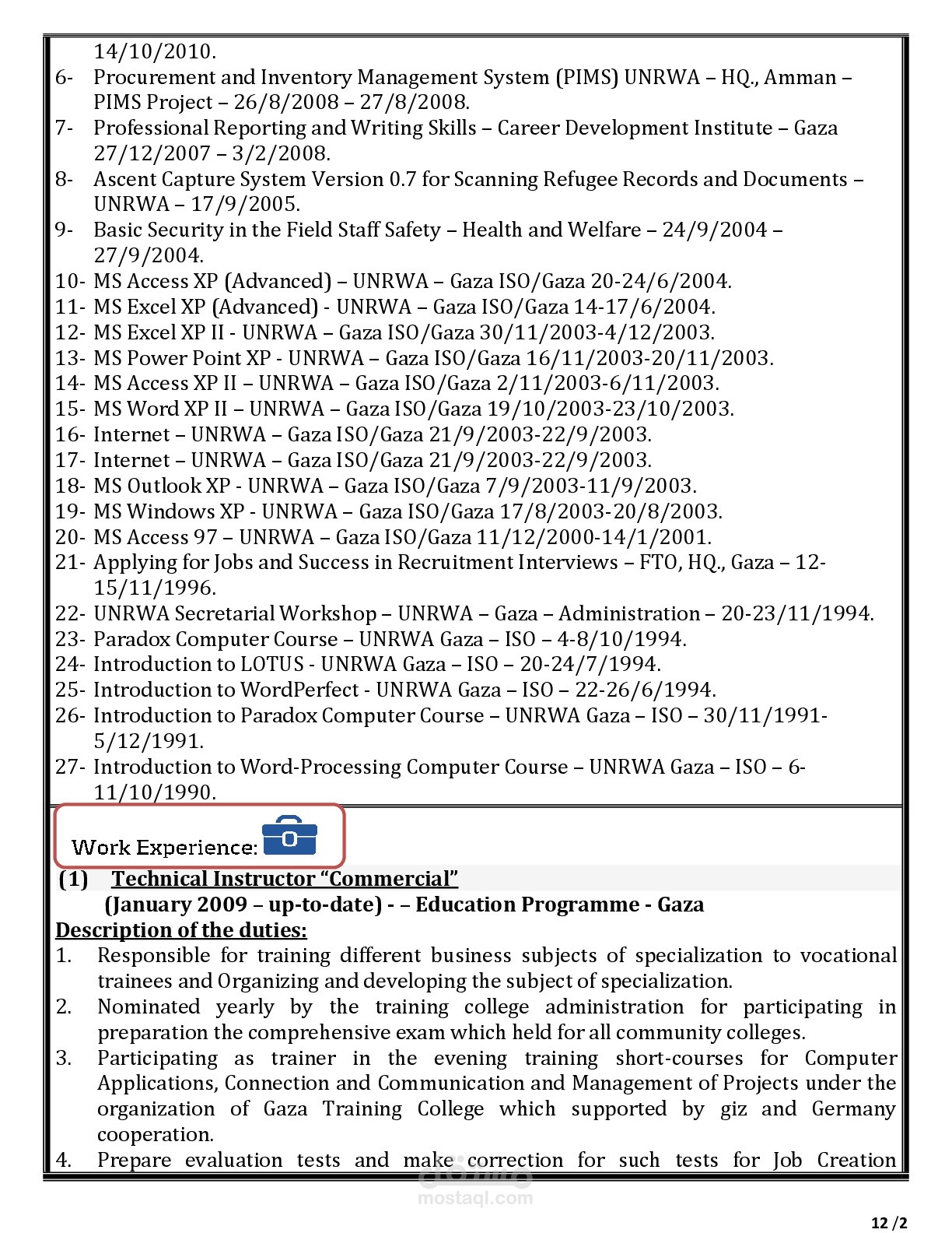 إعداد التقارير والتقييمات الخاصة بكل مرحلة حسب المطلوب. تعليم المتدربين مساقات الطباعة باللغتين العربية والإنجليزية واتقان الطباعة بسرعة تتجاوز 50 كلمة للدقيقة وبدون أخطاء 100%.