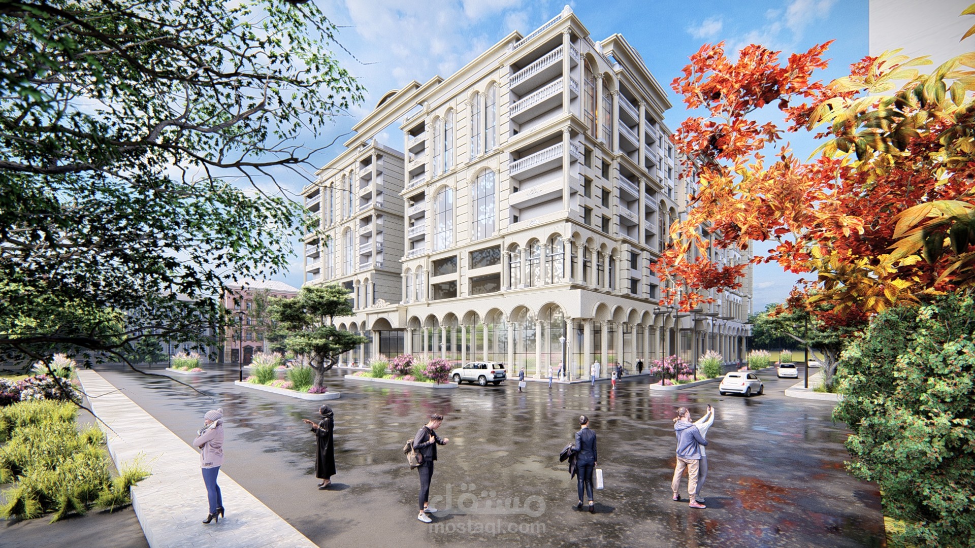 مع تصميم مول تجاري ودورين مكاتب ادارية