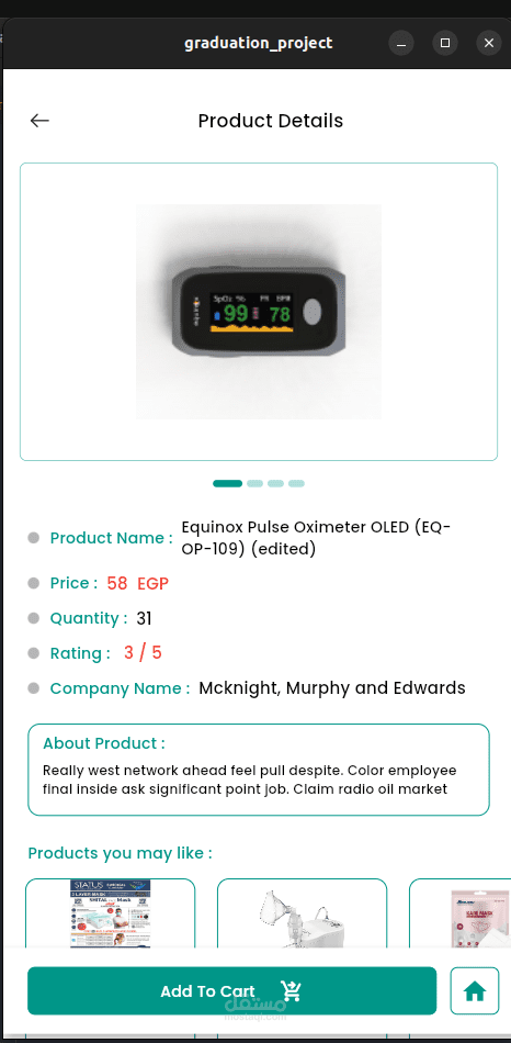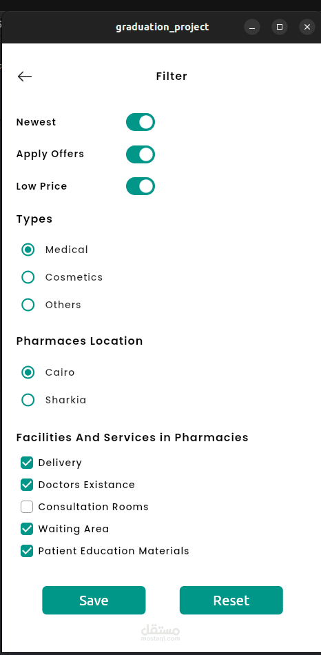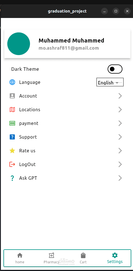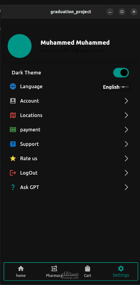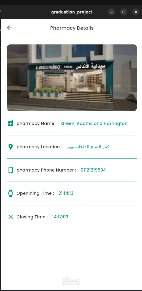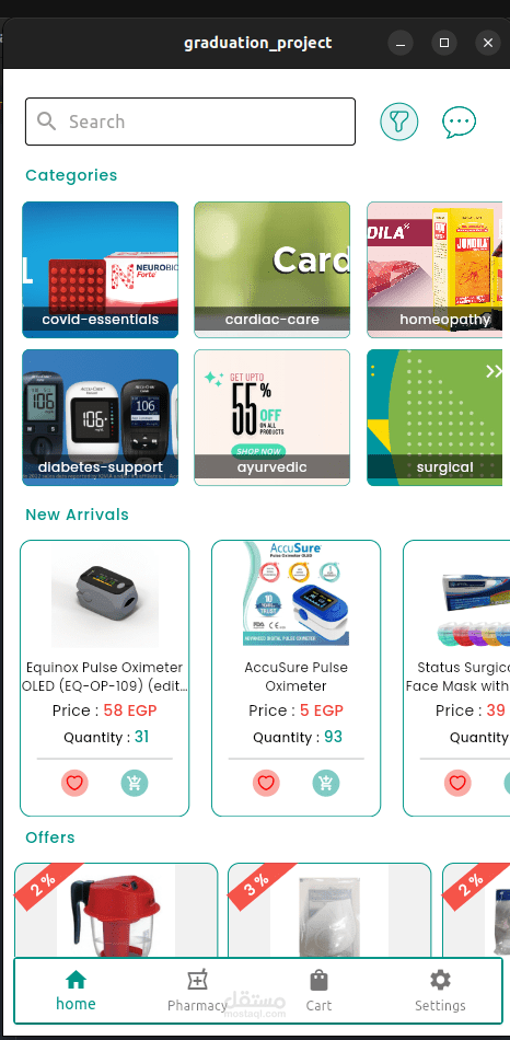 smart pharmacy application also an e commere app , ability to get orders an d pay orders also gole maps is used