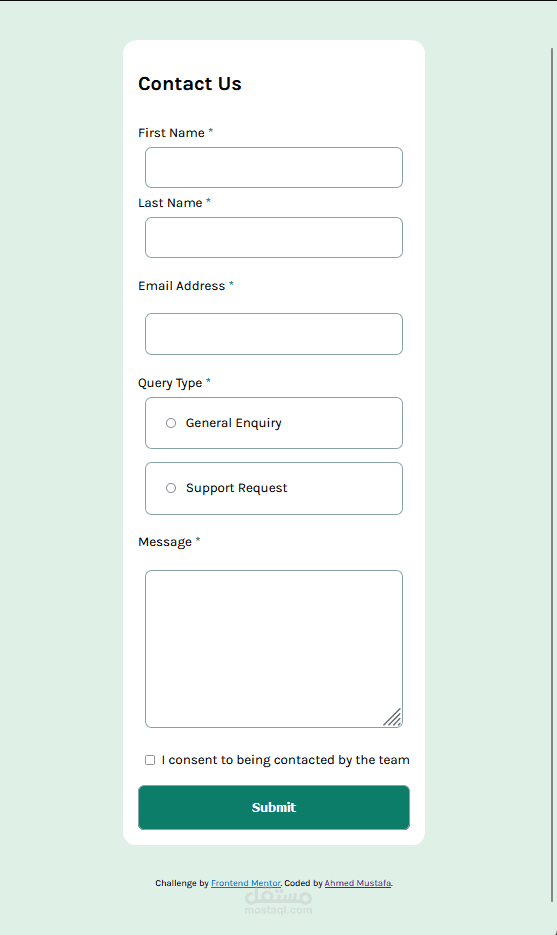 نموذج ارسال بيانات للتواصل بتصميم متجاوب مع جميع الشاشات