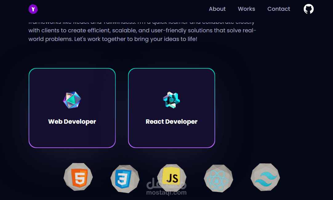 موقعي الشخصي بحتوي على الكثير من التصميمات و الأنيميشن التي تم تنفيذها باستخدام three.js و framer motion.