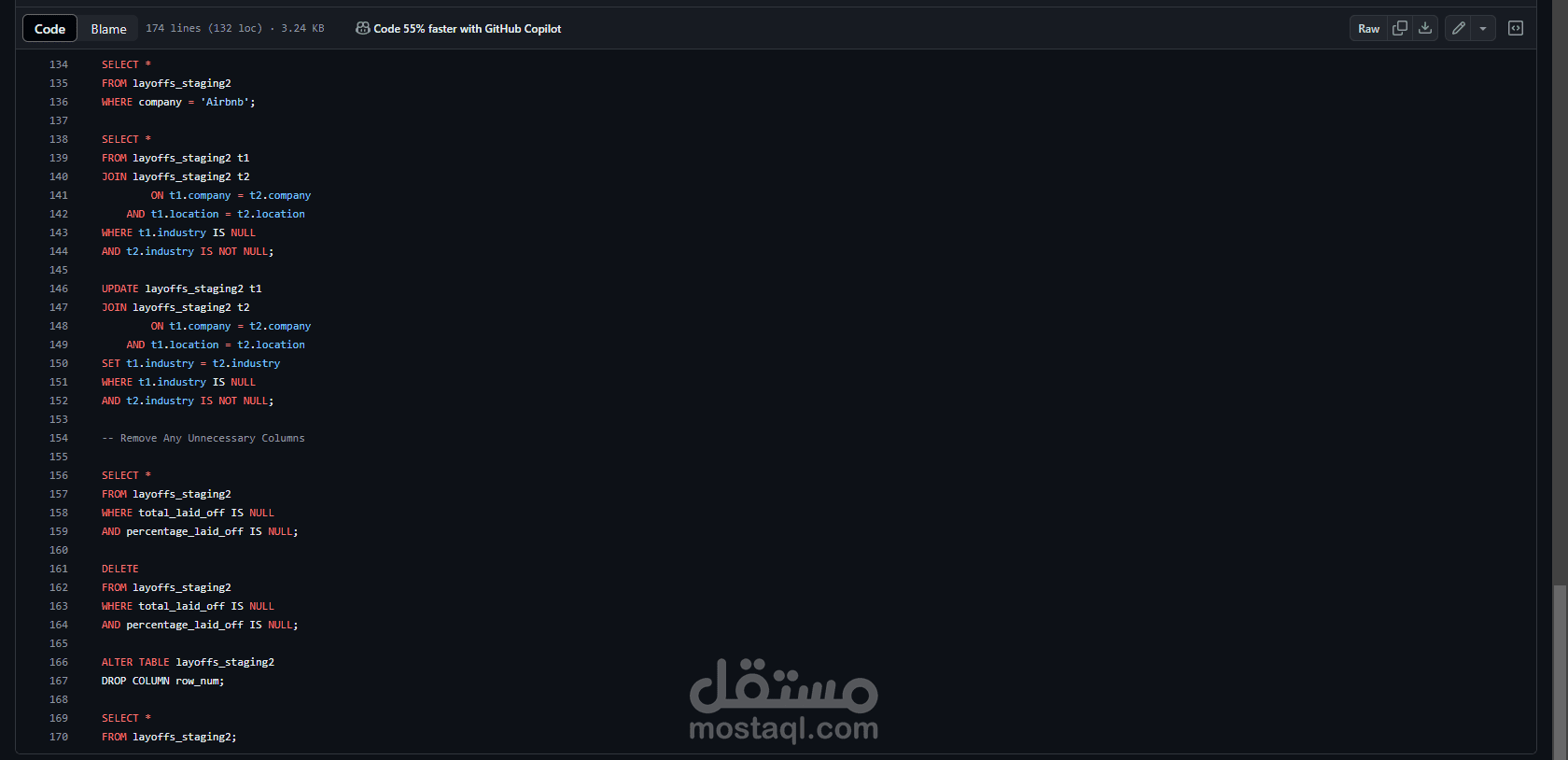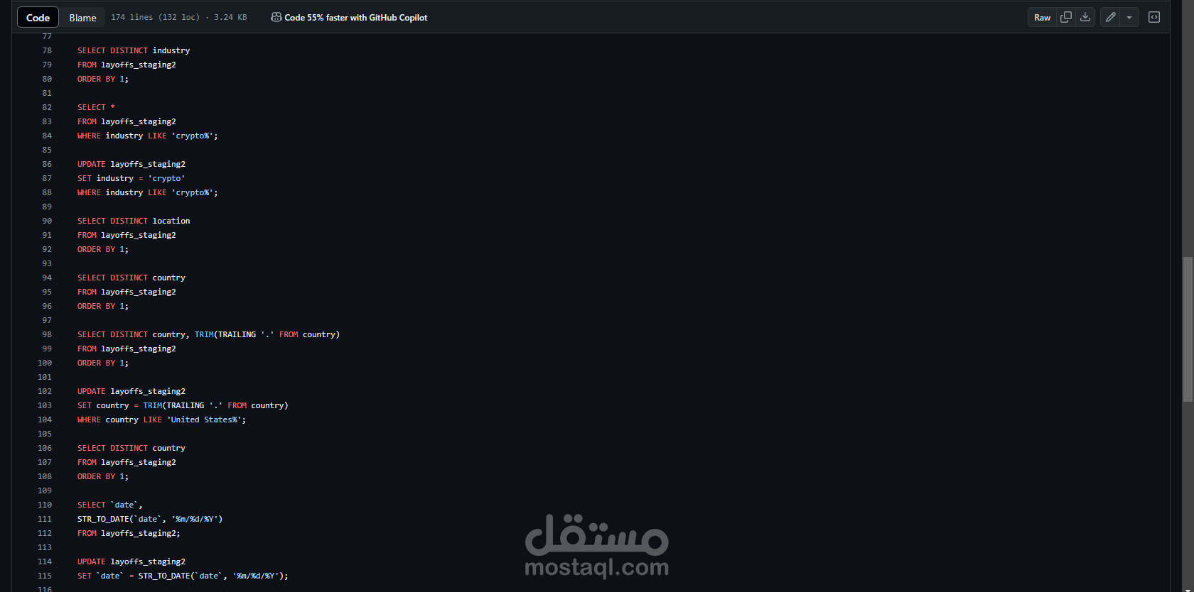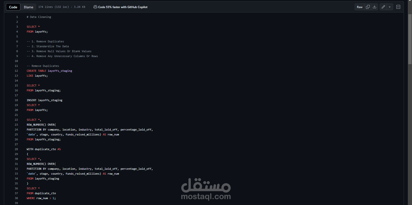في هذا المشروع، نأخذ بيانات إجمالي عمليات تسريح الموظفين عالميا ونحولها وننقيها في SQL Server لجعلها أكثر قابلية للاستخدام و التحليل.