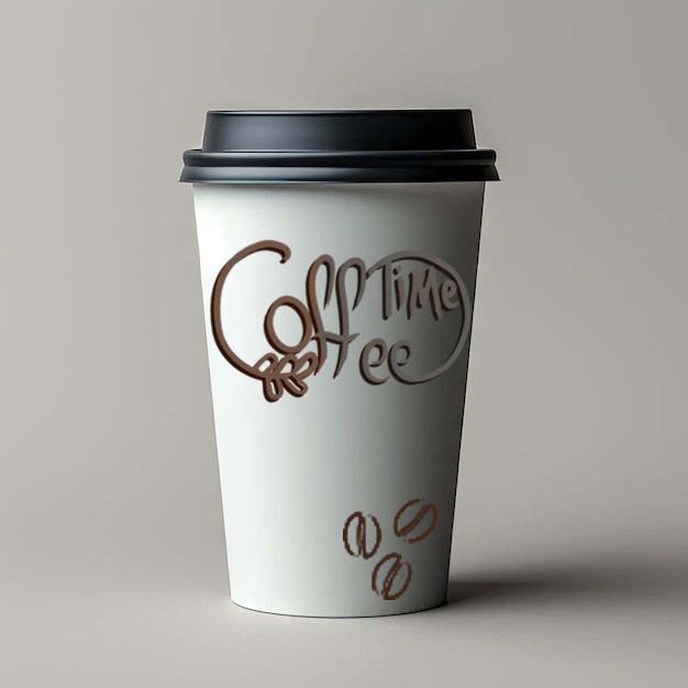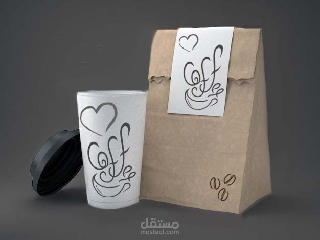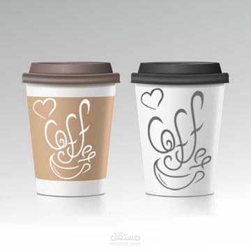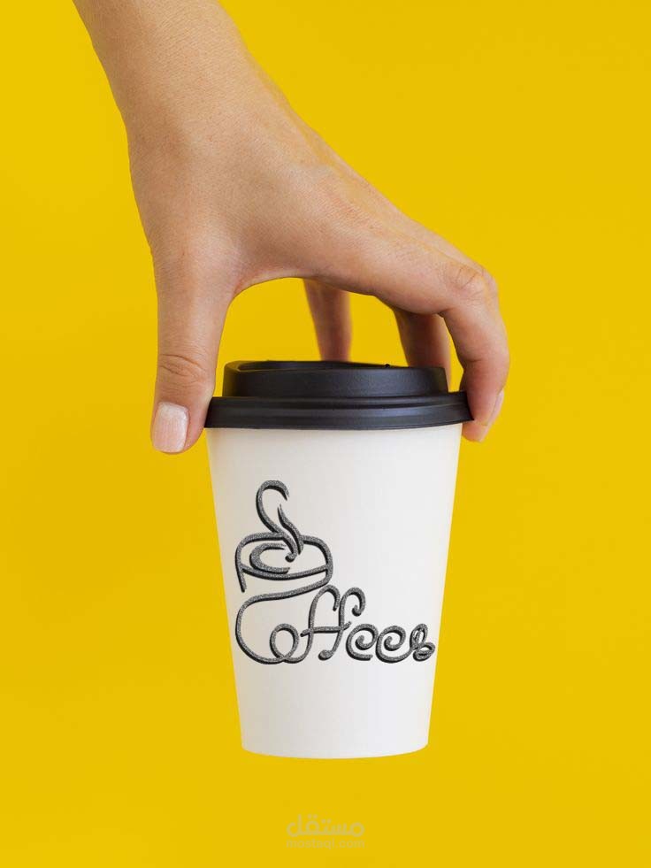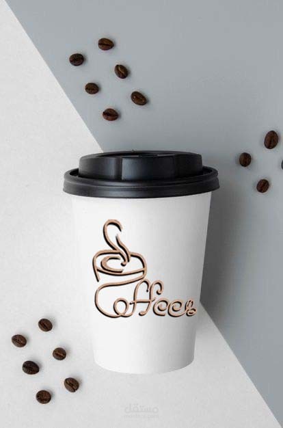 عمل mockup بإضافة شعار التصميم إلى نموذج من أكواب القهوة لتحويل مفهوم التصميم إلى واقع