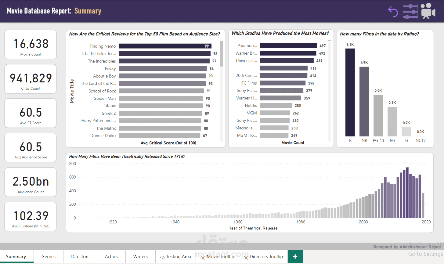 تحليل احترافى للمعلومات عن الافلام المنتجة من سنة 1911 الى 2020
