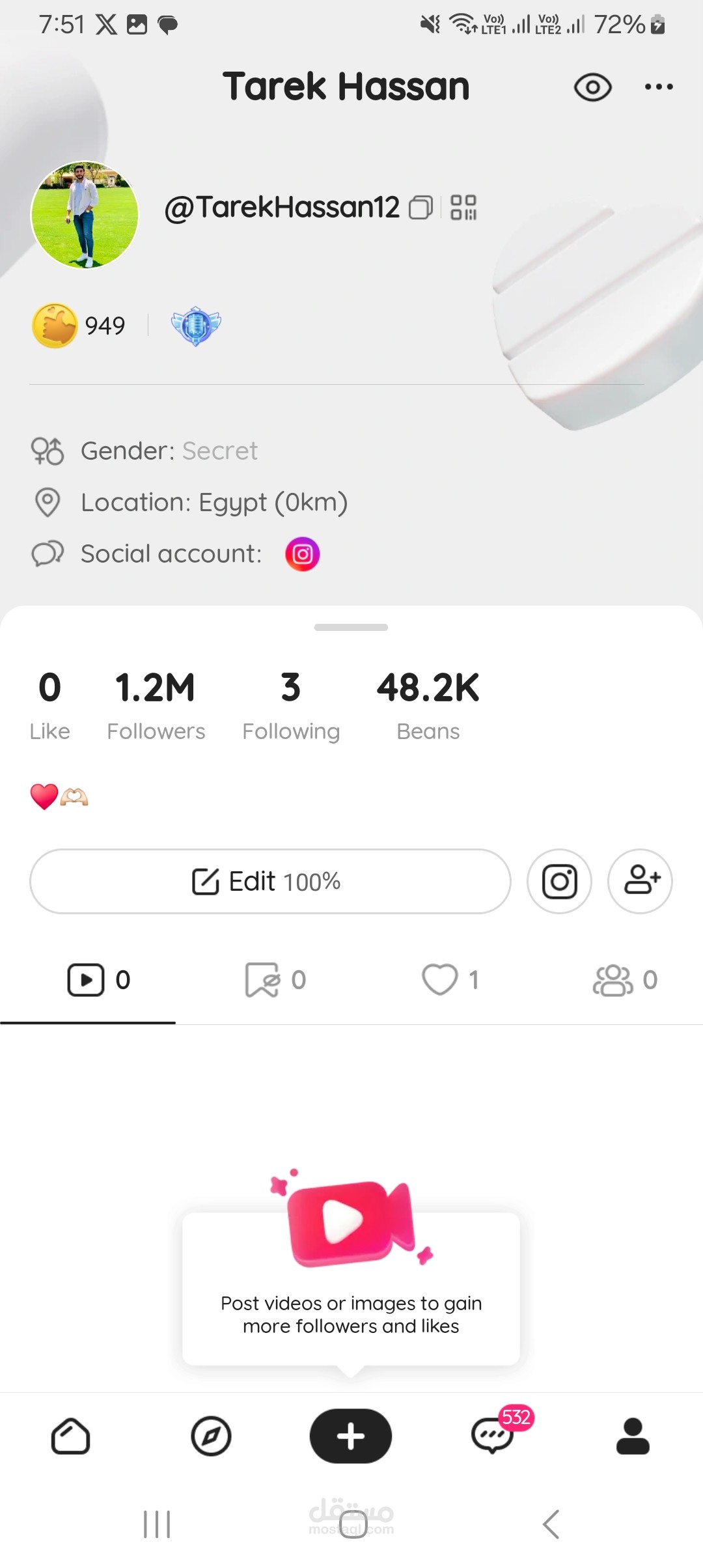 أعمل علي ابليكيشن لايكي كمسوق إلكتروني ولدي مليون و٢٠٠ الف متابع وقمت بالعديد من الاعمال مثل كامبينز لعيادة الفراشة للعمليات التجميلية