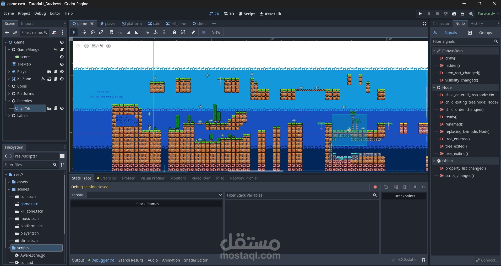 This project involves a comprehensive tutorial in Godot Engine, focusing on creating a 2D platformer game. The tutorial guides users through the development of a game where a knight character navigates a dynamic world to collect coins while evading a moving enemy and navigating platforms.