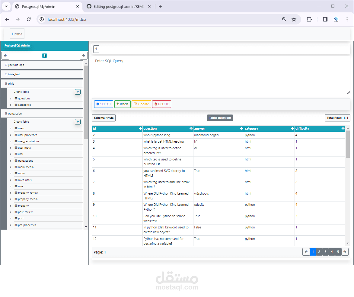 برنامج باستخدام python flask, PostgreSQL, SQL, and JavaScript