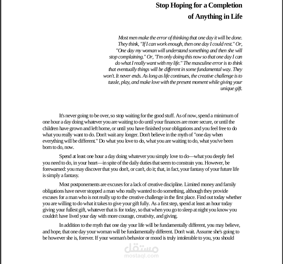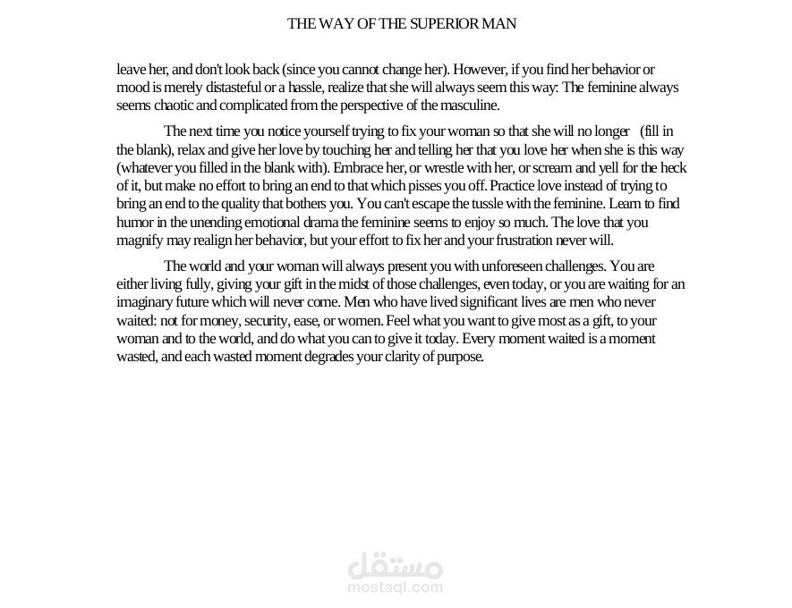 كتاب The Way of The Superior Men هو من اكثر الكتب شهرة عالميا و لكنه ليس متوفر باللغة العربية , استطعت ترجمة الكتاب من خلال قراءته و تحليل الكتاب تحليلا كاملا:
