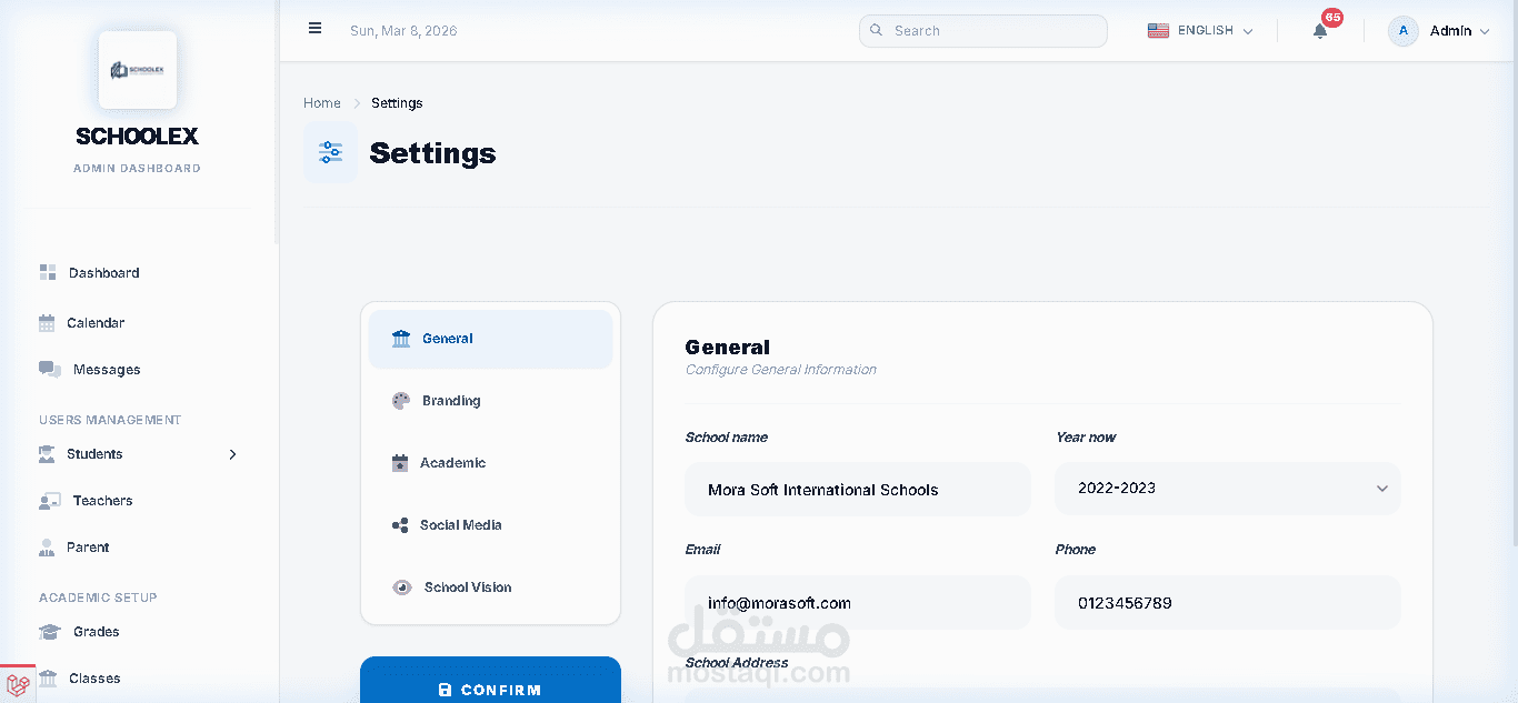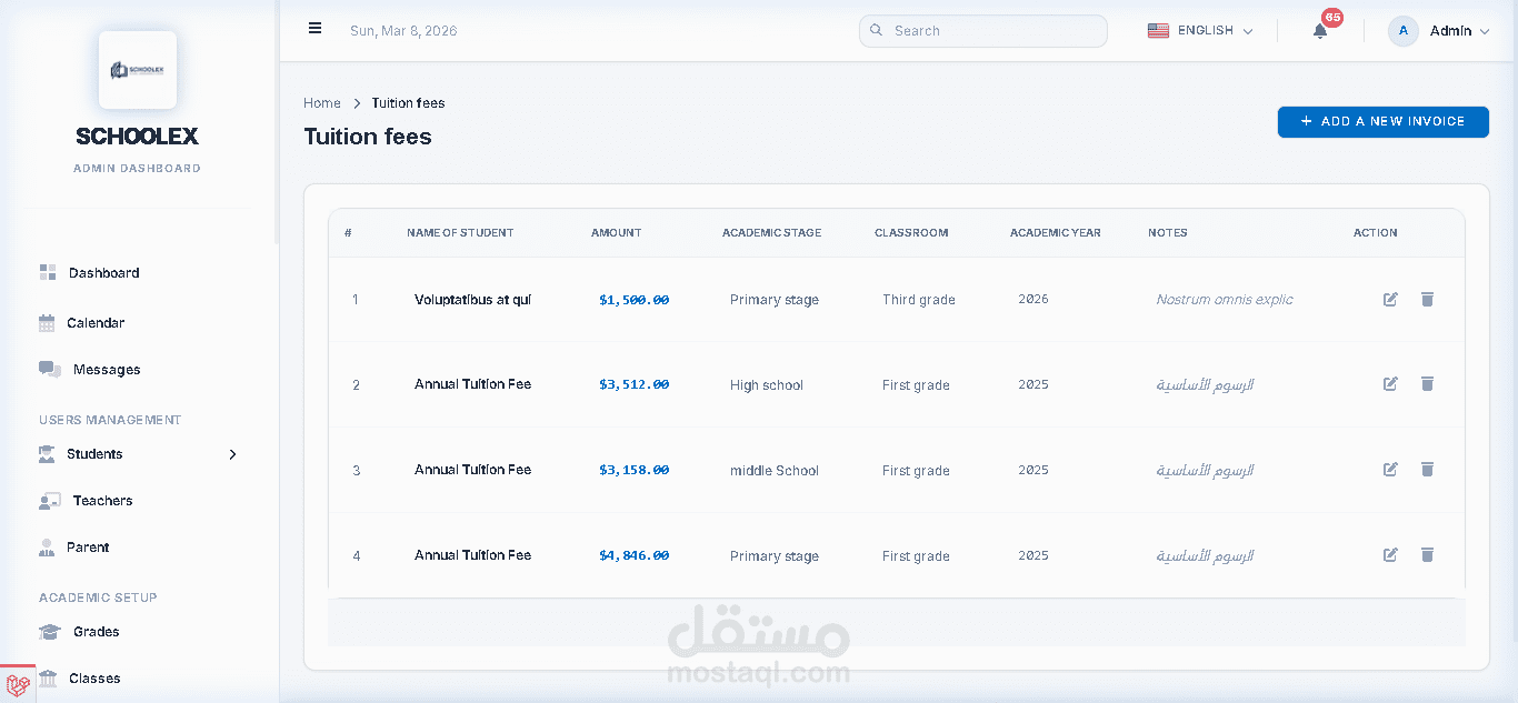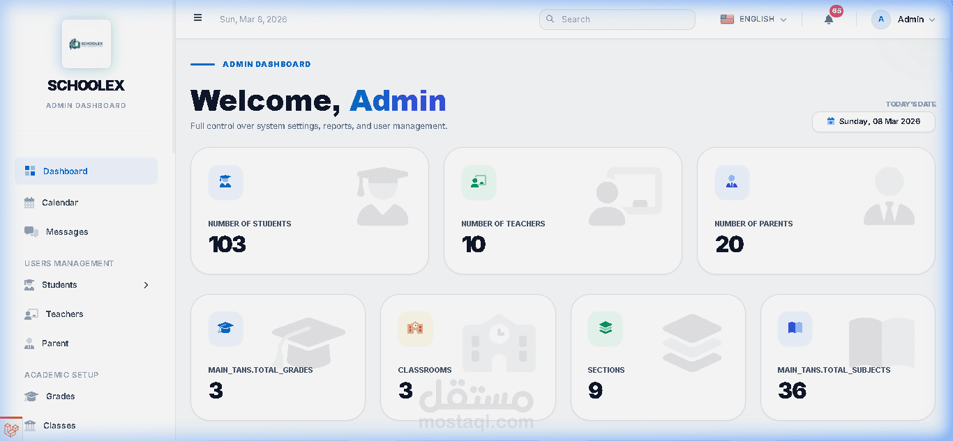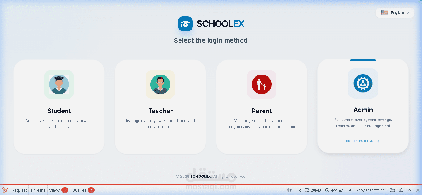 قمت بتطوير نظام إدارة مدارس احترافي ومتكامل يساعد المؤسسات التعليمية على إدارة جميع العمليات الأكاديمية والإدارية والمالية من خلال منصة واحدة سهلة الاستخدام وسريعة الأداء.