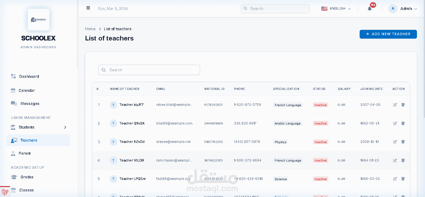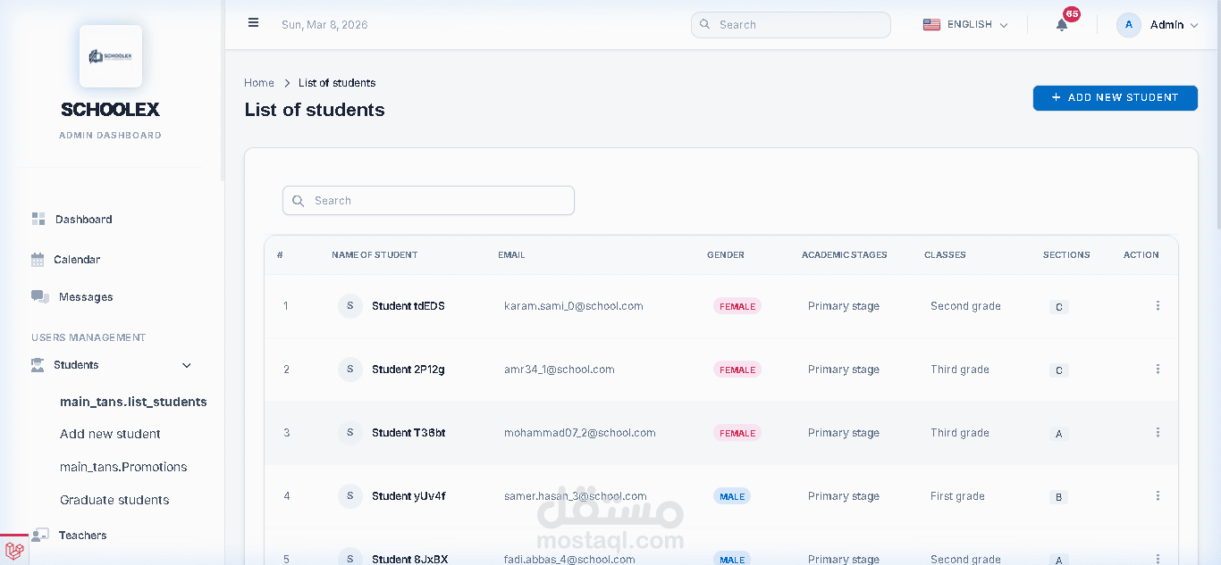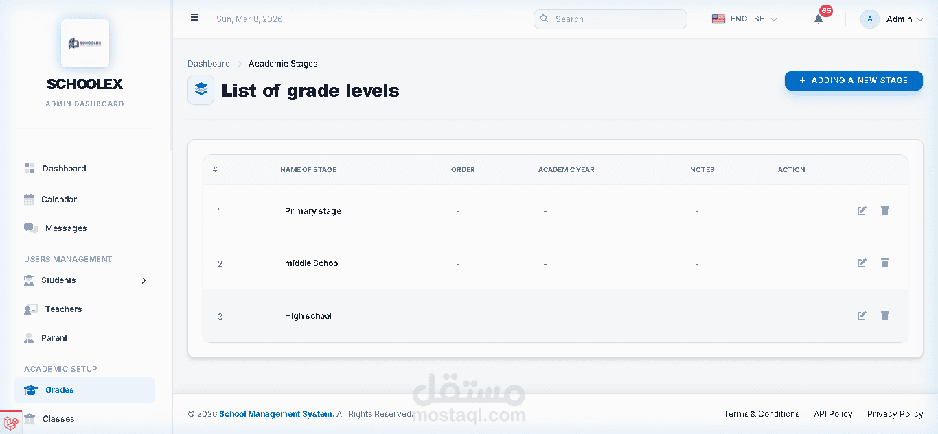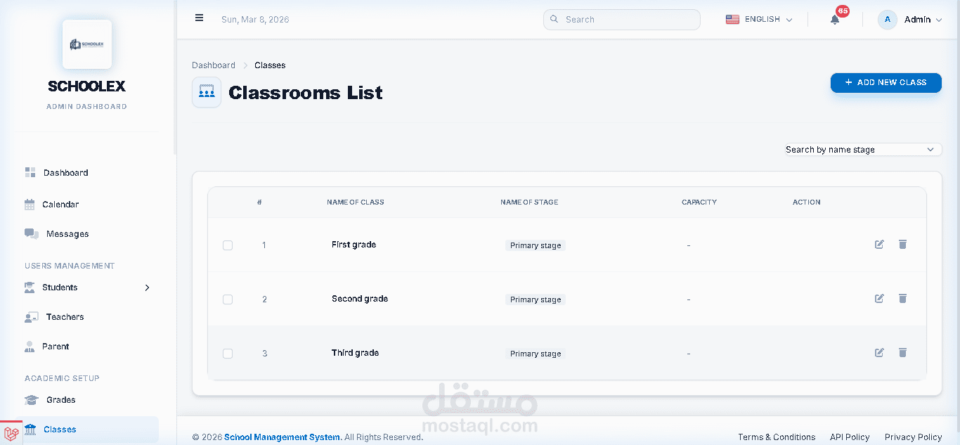 قمت بتطوير نظام إدارة مدارس احترافي ومتكامل يساعد المؤسسات التعليمية على إدارة جميع العمليات الأكاديمية والإدارية والمالية من خلال منصة واحدة سهلة الاستخدام وسريعة الأداء.