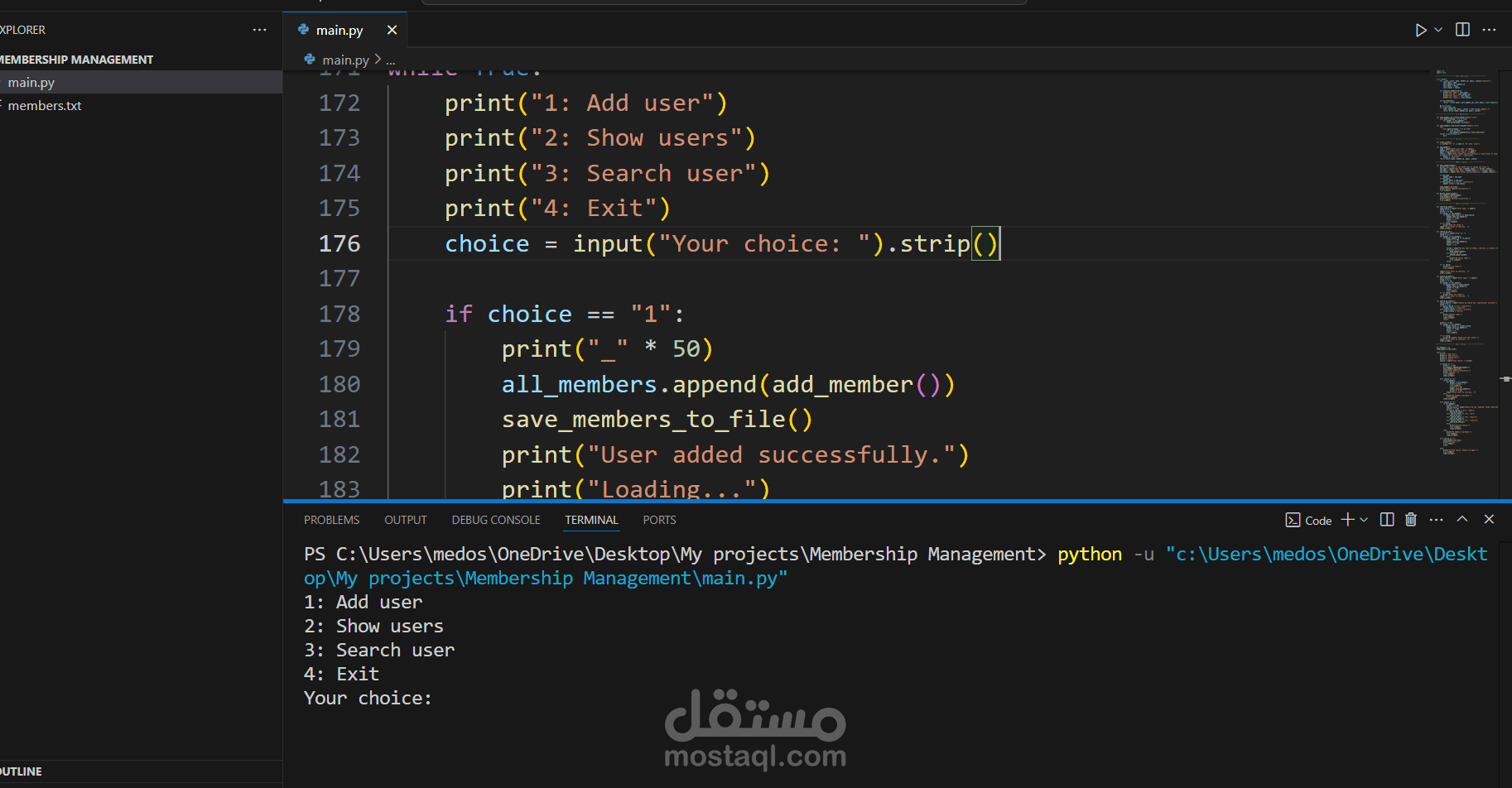 You can add, view, search, edit, and delete members — with automatic data saving to a file.