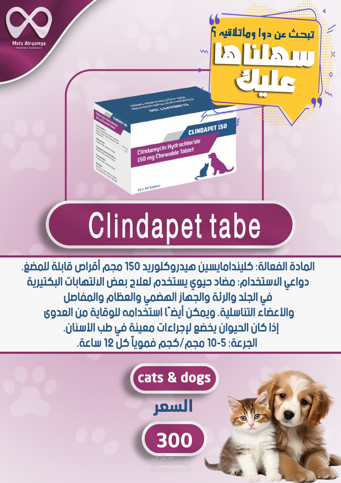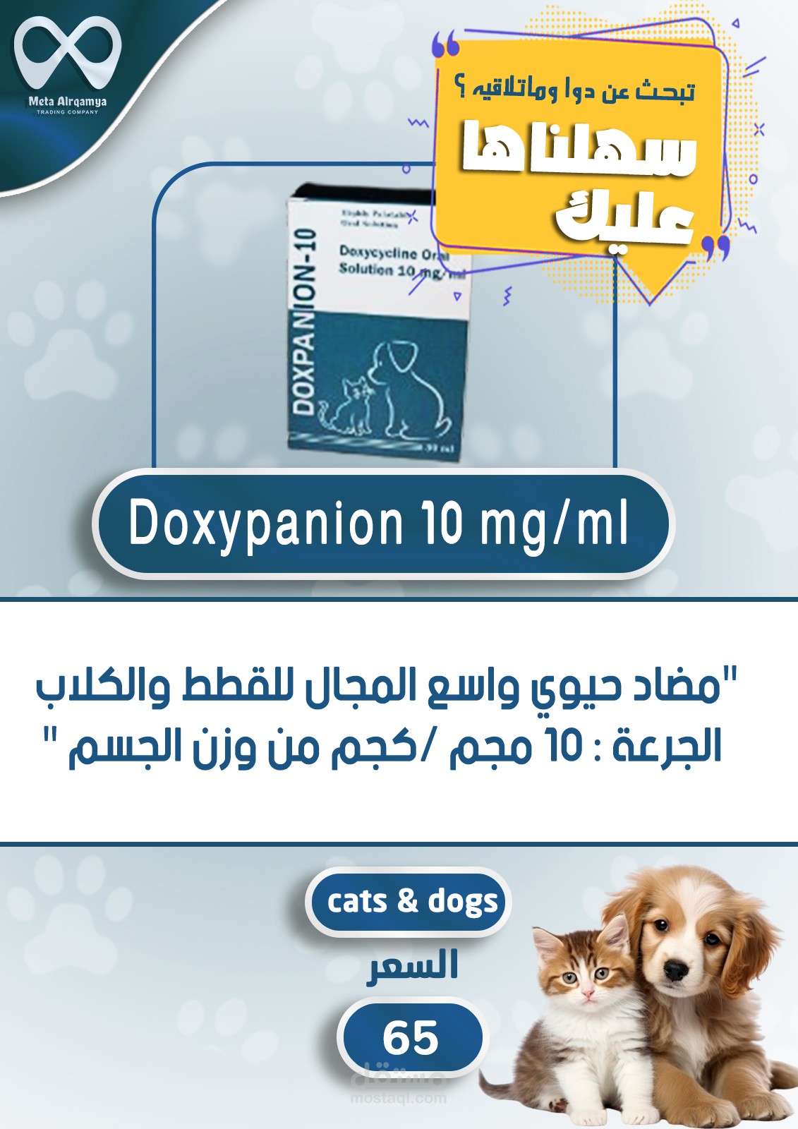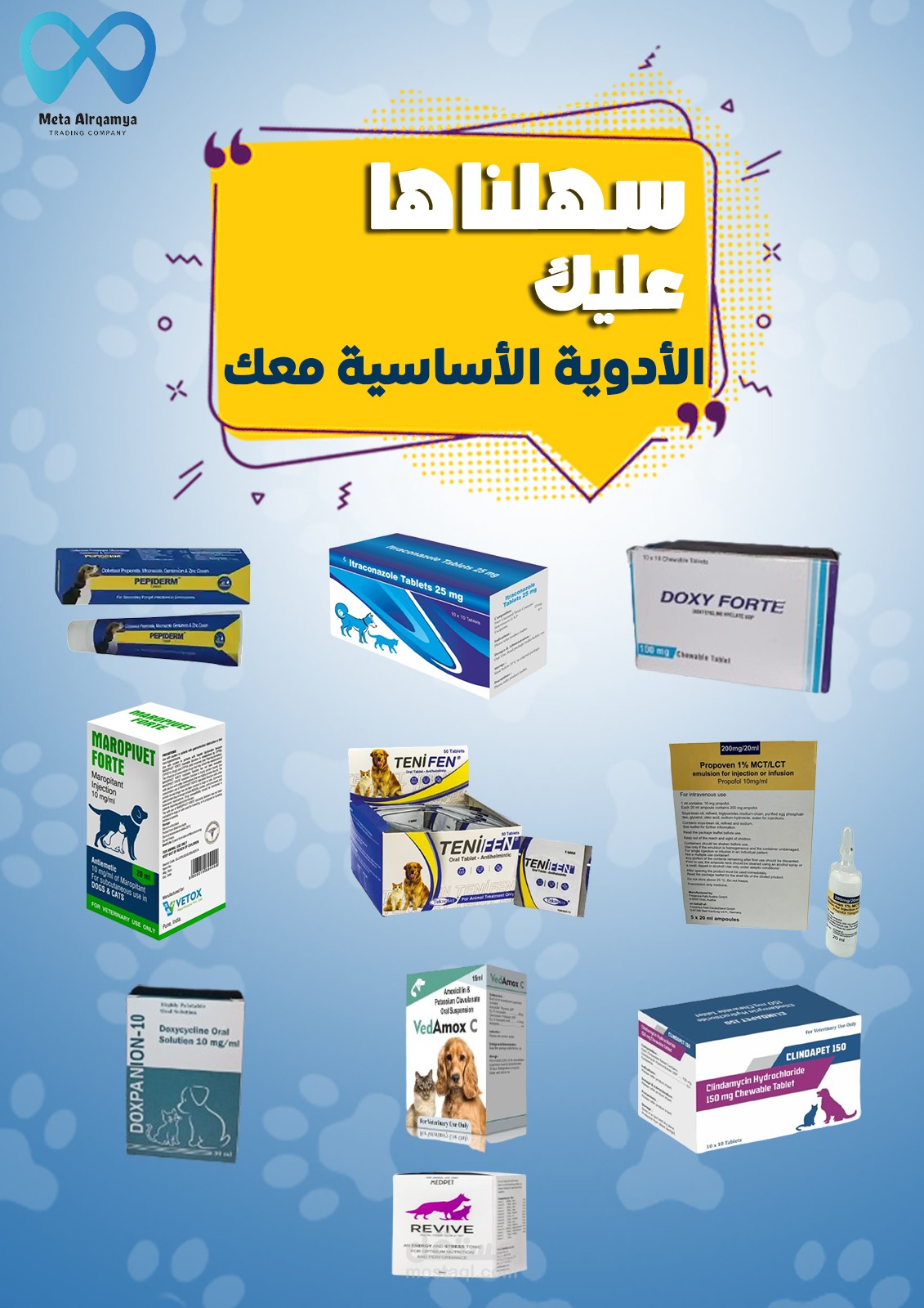 بعض التصميمات للادوية الخاصة بالحيوانات الأليفة لدى شركتي bytary - meta