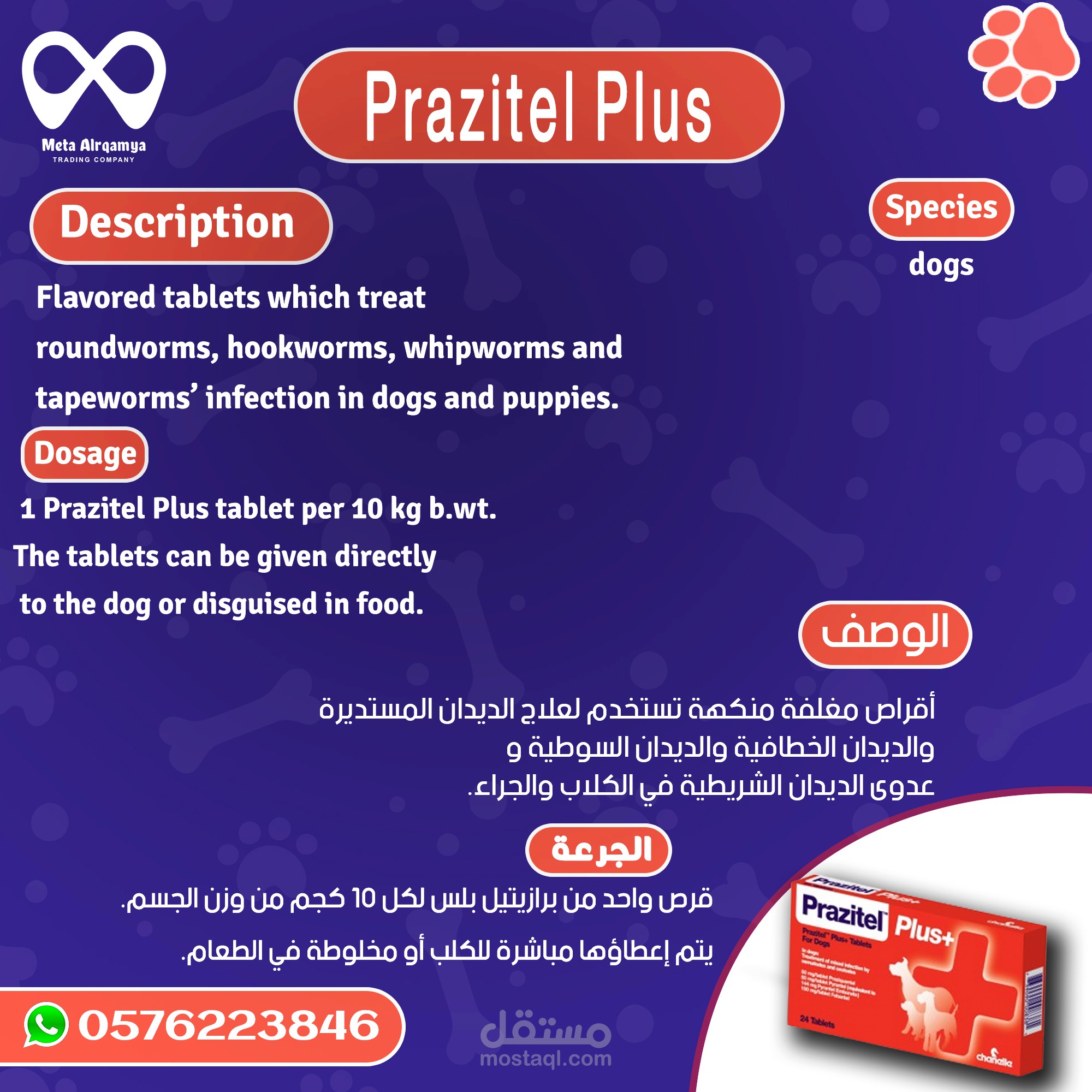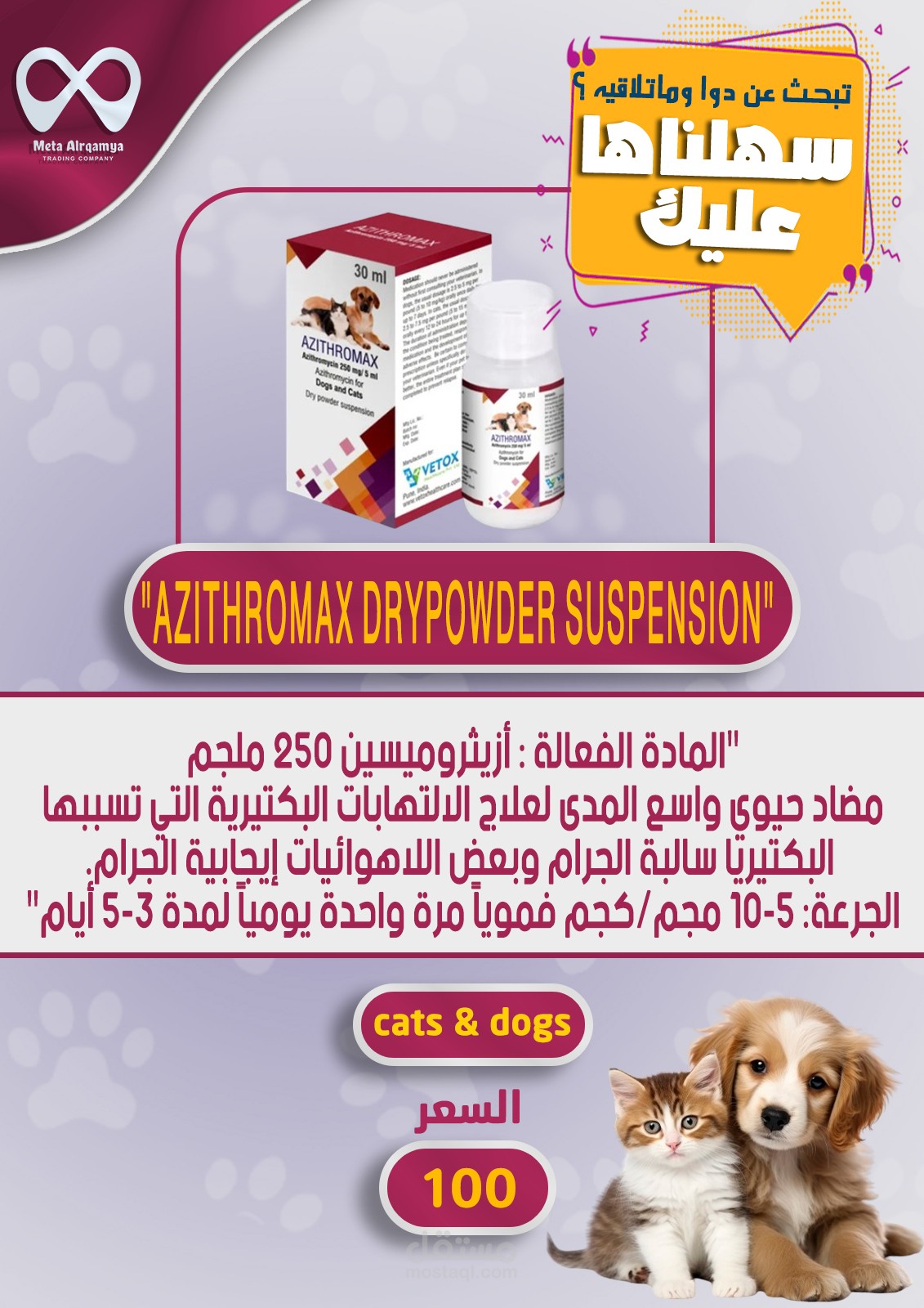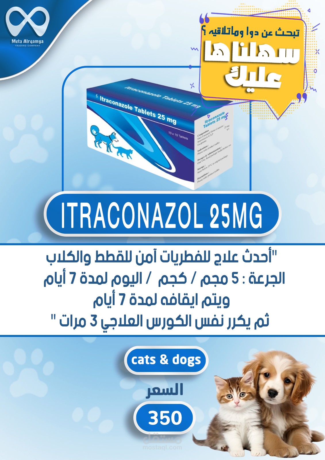 بعض التصميمات للادوية الخاصة بالحيوانات الأليفة لدى شركتي bytary - meta
