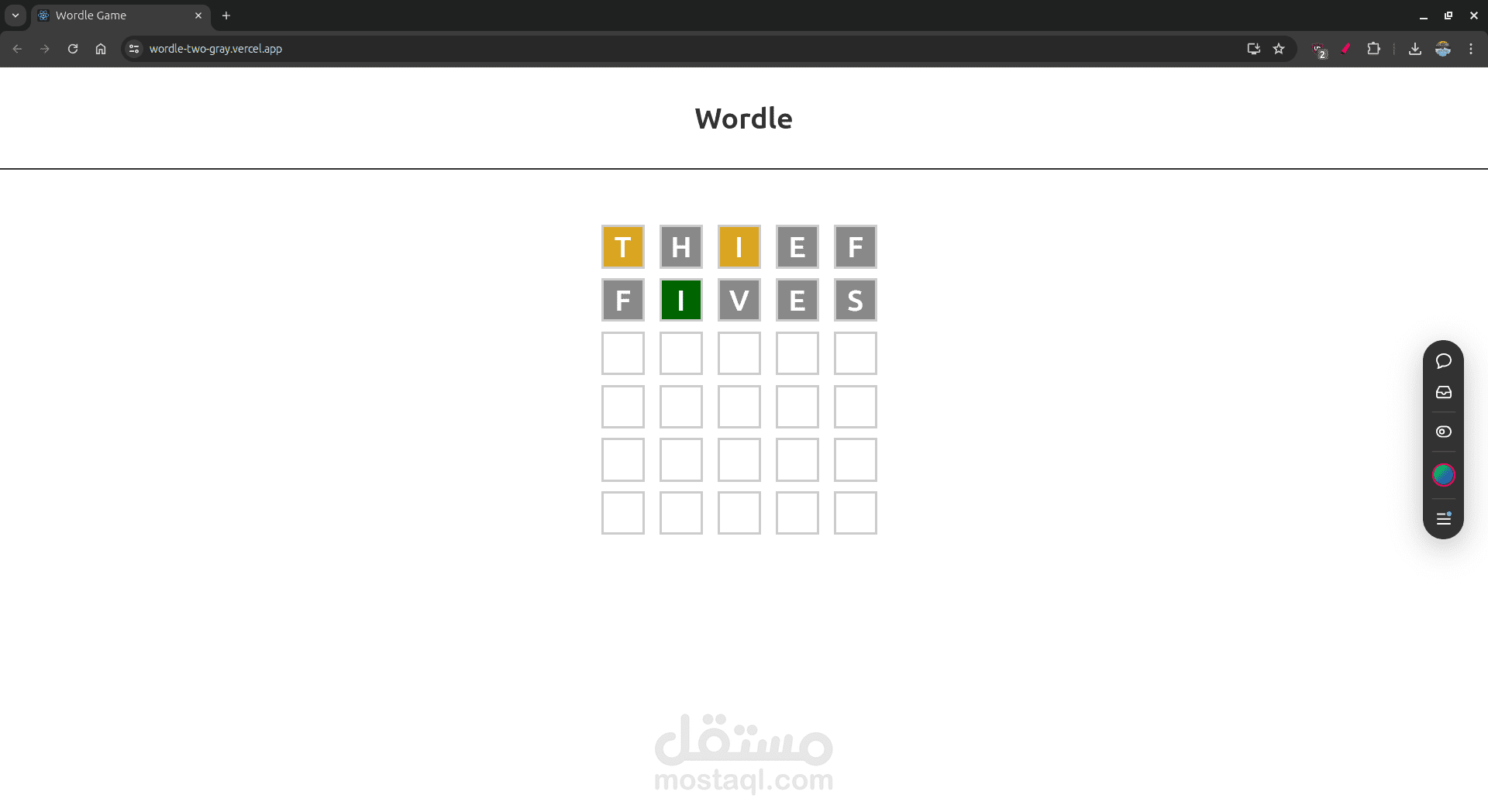 تم تطوير نسخة على شبكة الإنترنت من لعبة تخمين الكلمات الكلاسيكية. يخمن اللاعبون كلمة سرية مكونة من خمسة أحرف خلال ست محاولات، مما يتحدى مهاراتهم في المفردات والاستنتاج. تم استخدام واجهة برمجة التطبيقات (API) لجلب كلمة عشوائية مكونة من خمسة أحرف لليوم.