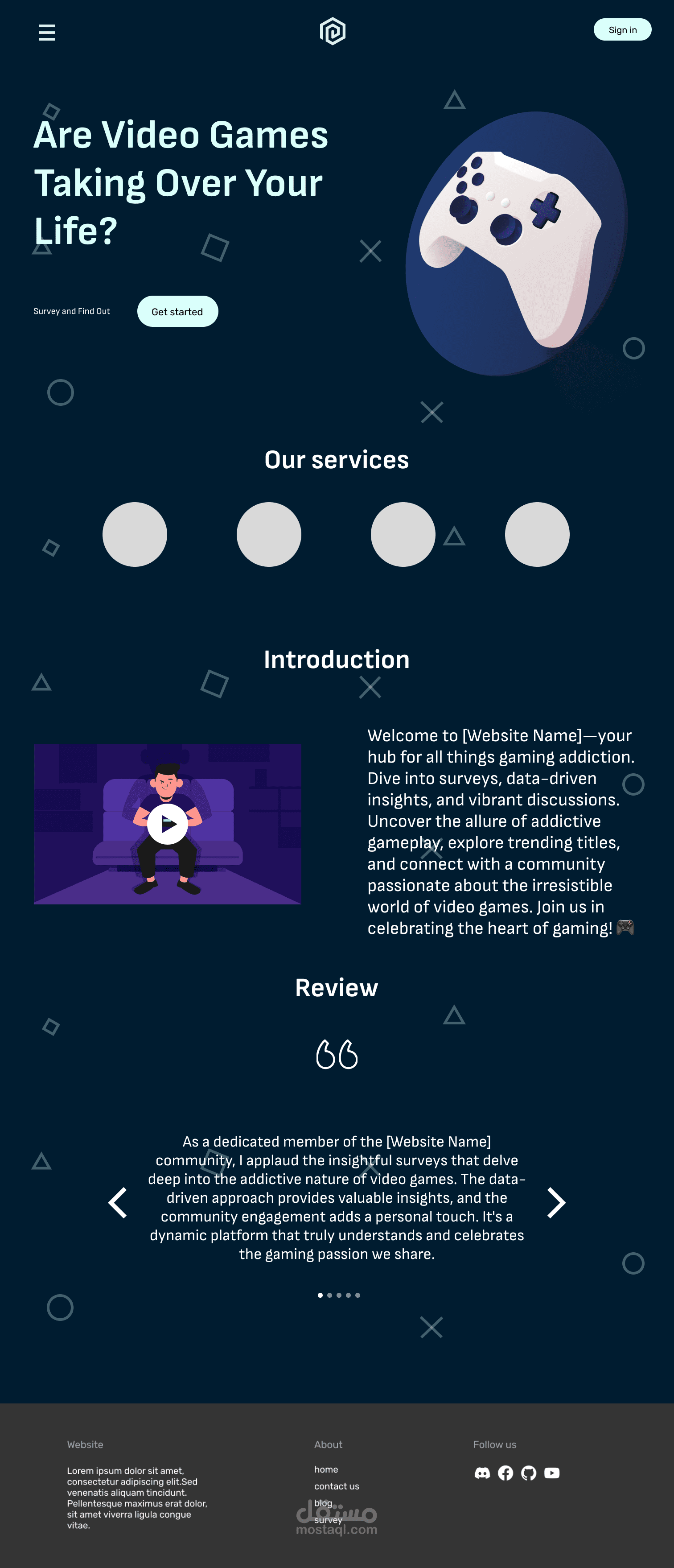 في هذا المشروع، قمت بتصميم واجهة مستخدم لصفحة بداية تهدف إلى توعية المستخدمين حول مشكلة إدمان ألعاب الفيديو، وتوفير مدخل لاستبيان يقيم مدى الإدمان. الهدف من التصميم هو جذب المستخدمين لتعلم المزيد عن الموضوع، ومن ثم تشجيعهم على التخلص من الإدمان و معالجته.