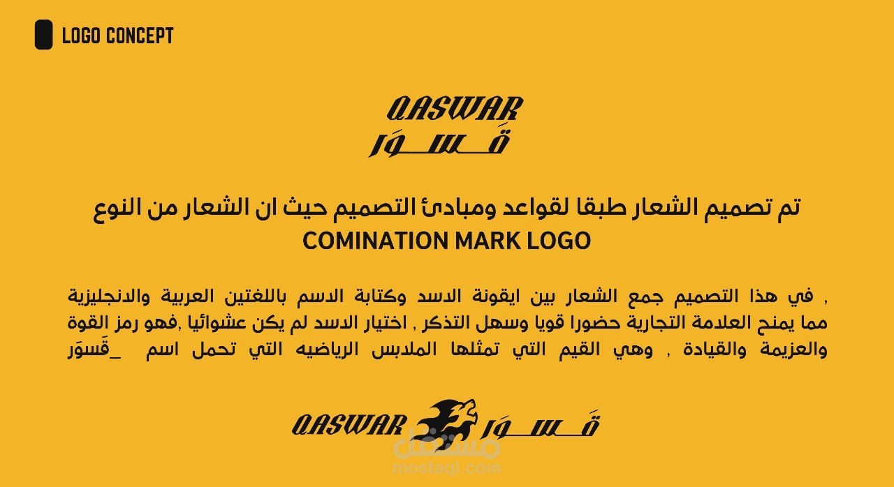 الشعار رسم بطريقه جذابه للعين وباسلوب راقي حيث تم كتابه كلمه قسىور باللغه العربيه والانجليزيه بشكل محترف مع اضافه ايقونه الاسد بشكل راقي لتوحي بالفخامه واستخدام الوان جذابه للعين ليعطي للشعار لمسه من الابداع والجمال
