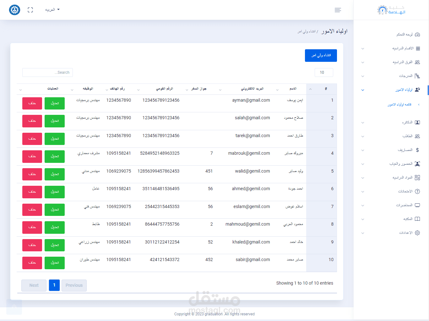 2 - تسجيل الطلاب واولاياء الامور و المعلمين وكل ادارة الموقع من الادمن