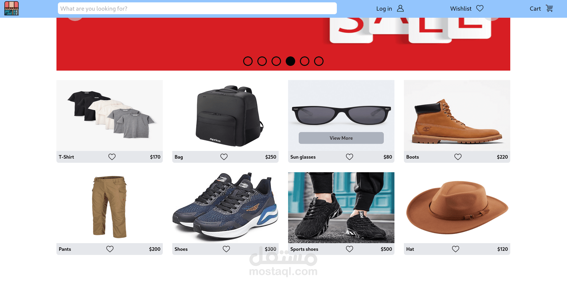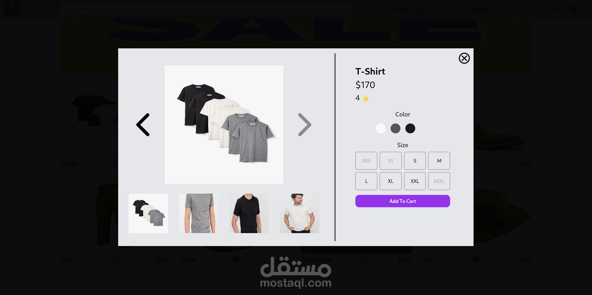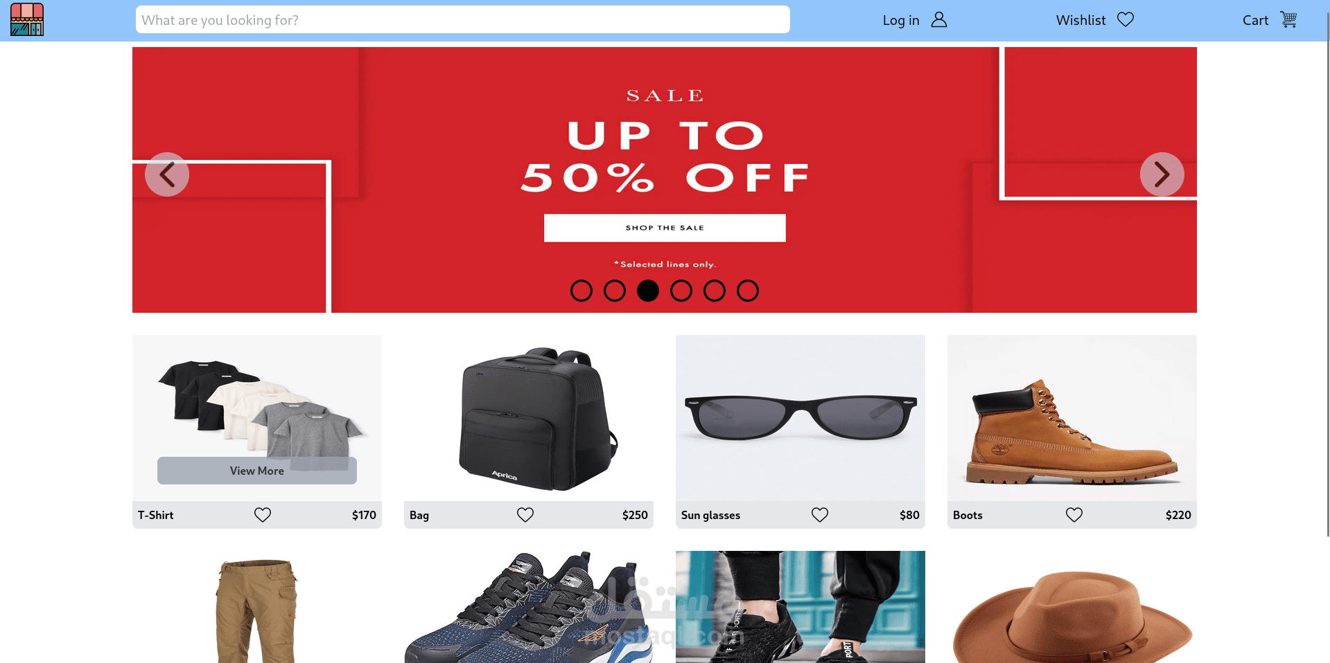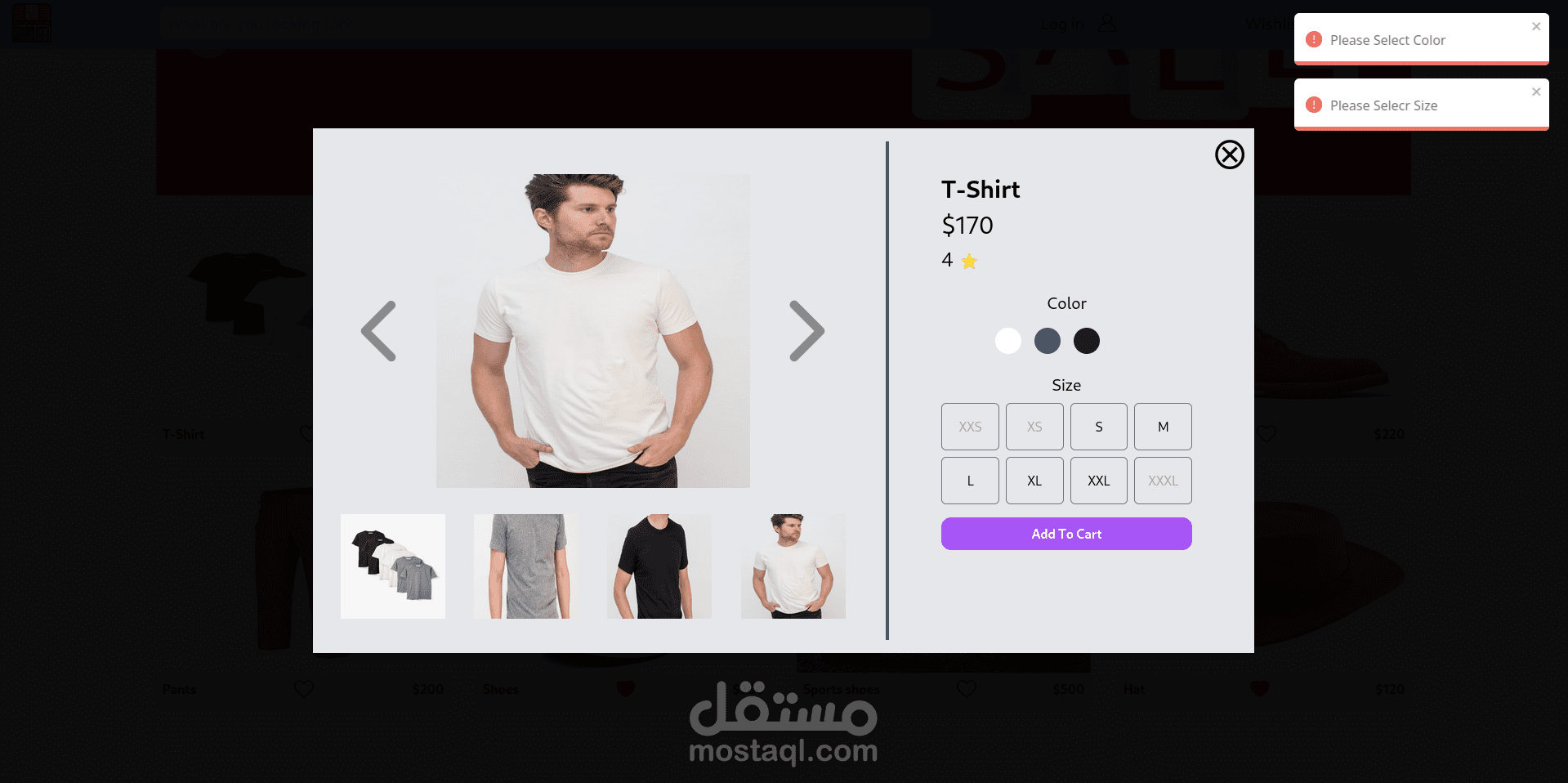 3- عرض المنتجات في تلك المنطقه عن طريق grid style in tailwind css و عند الضغط عليها يتم فتح alert يوجد بها الصور للمنتج و الاسم و السعر و التقييم و اللون و الحجم و زر للاضافه لعربه التسويق كل هذا عن طريق data.map