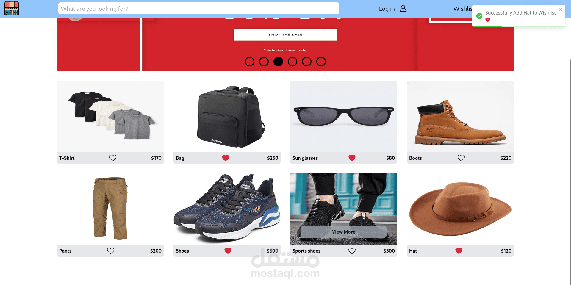 4- عند عمل love للمنتج يتغير love: true حتي يتم اضافته الي قائمه wishlist عن طريق data.filter ويمكن حذف عن طريق الضغط علي x