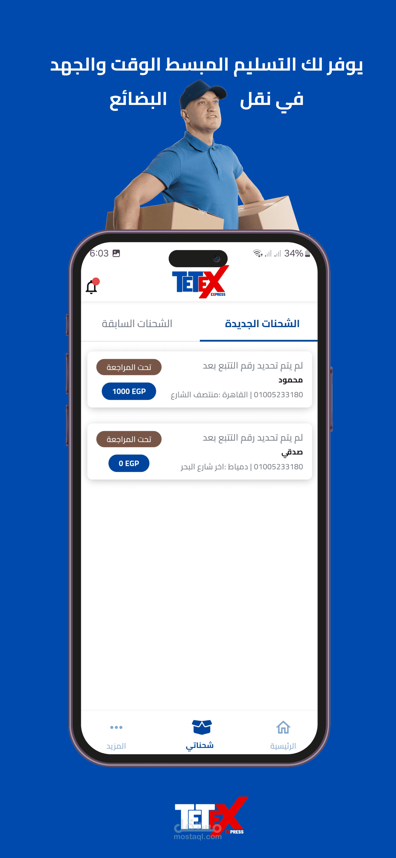 شركة شحن مصرية مهمتها هي نقل البضائع داخل محافظات مصر ,وتطبيقها يسهل على العملاء عملية ارسال الشحنة والتواصل مع الشركة وتتبع شحناتهم من التسجيل حتى اكمال الطلب والتسليم