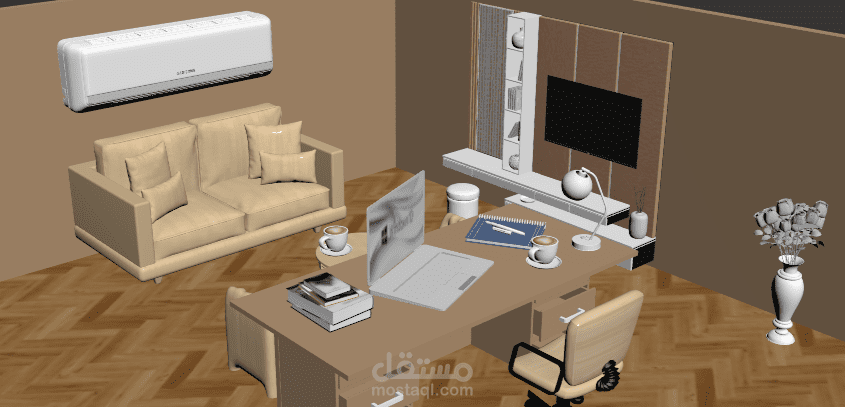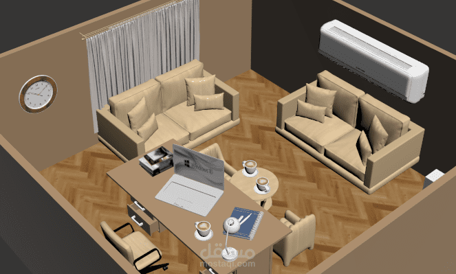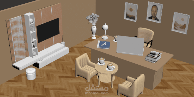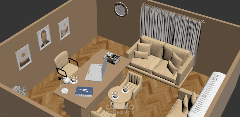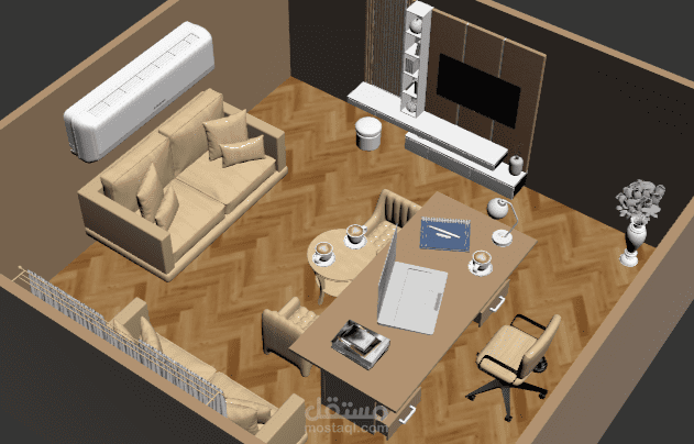 تصميم مكتب 3d قمت بتصميمه علي برنامج 3d max يتميز بالألوان الرائة والتصميم الجيد