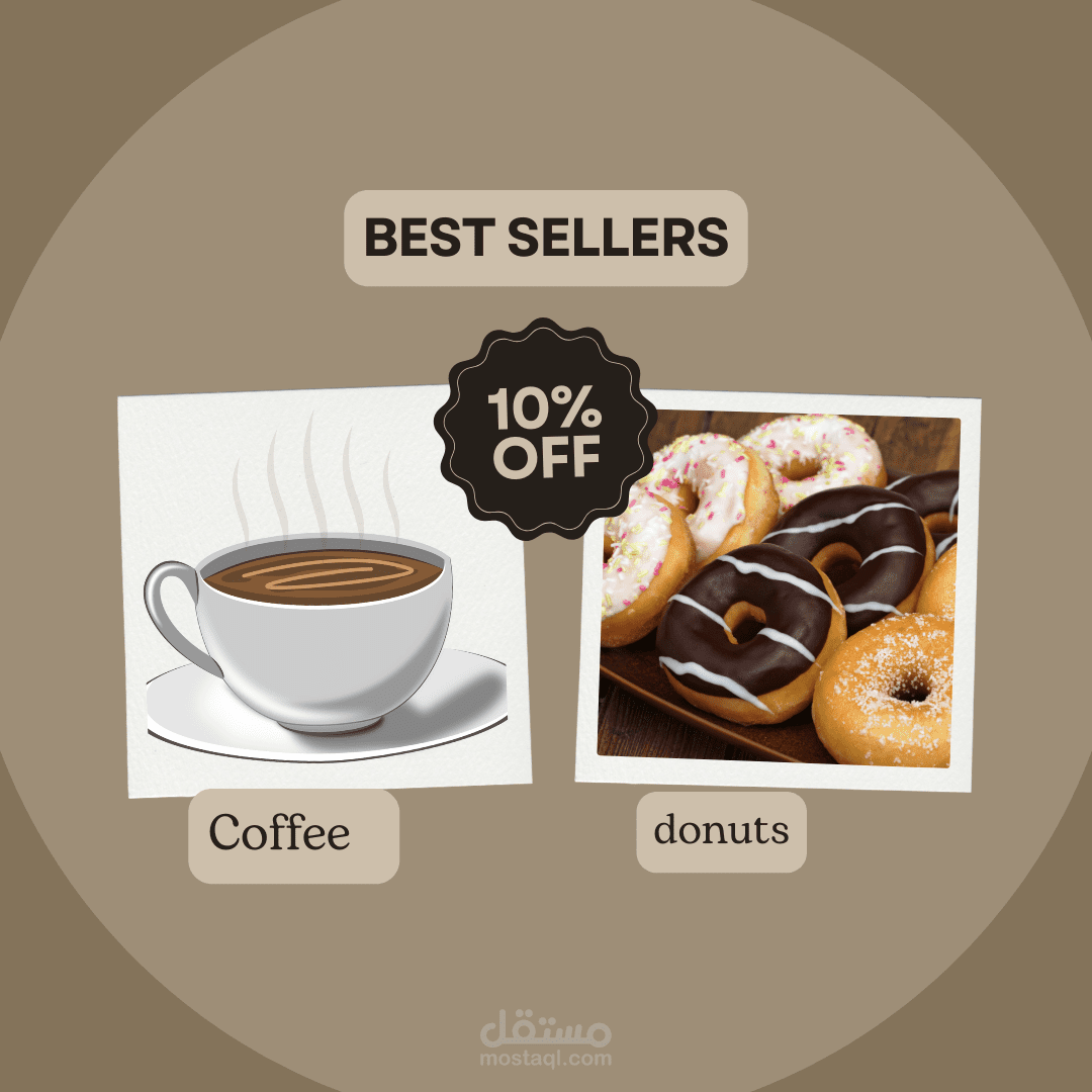 تصميم إعلان ترويجي مخصص لحملة خصومات على القهوة والدوناتس.